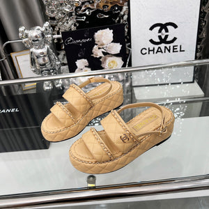 Chanel Chanel Wedge Sandals Beige Lambskin
