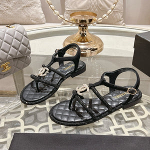 CC 25 Sandals Leather Chain 6cm Black Lambskin 338656