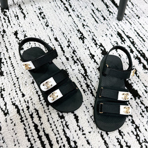 CC 25SS Sandals Three Straps Black Calfskin 338325