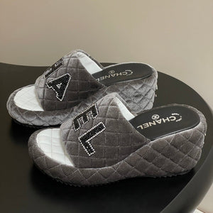 CC 25 Platform Slippers Grey Velvet Sheepskin 334239