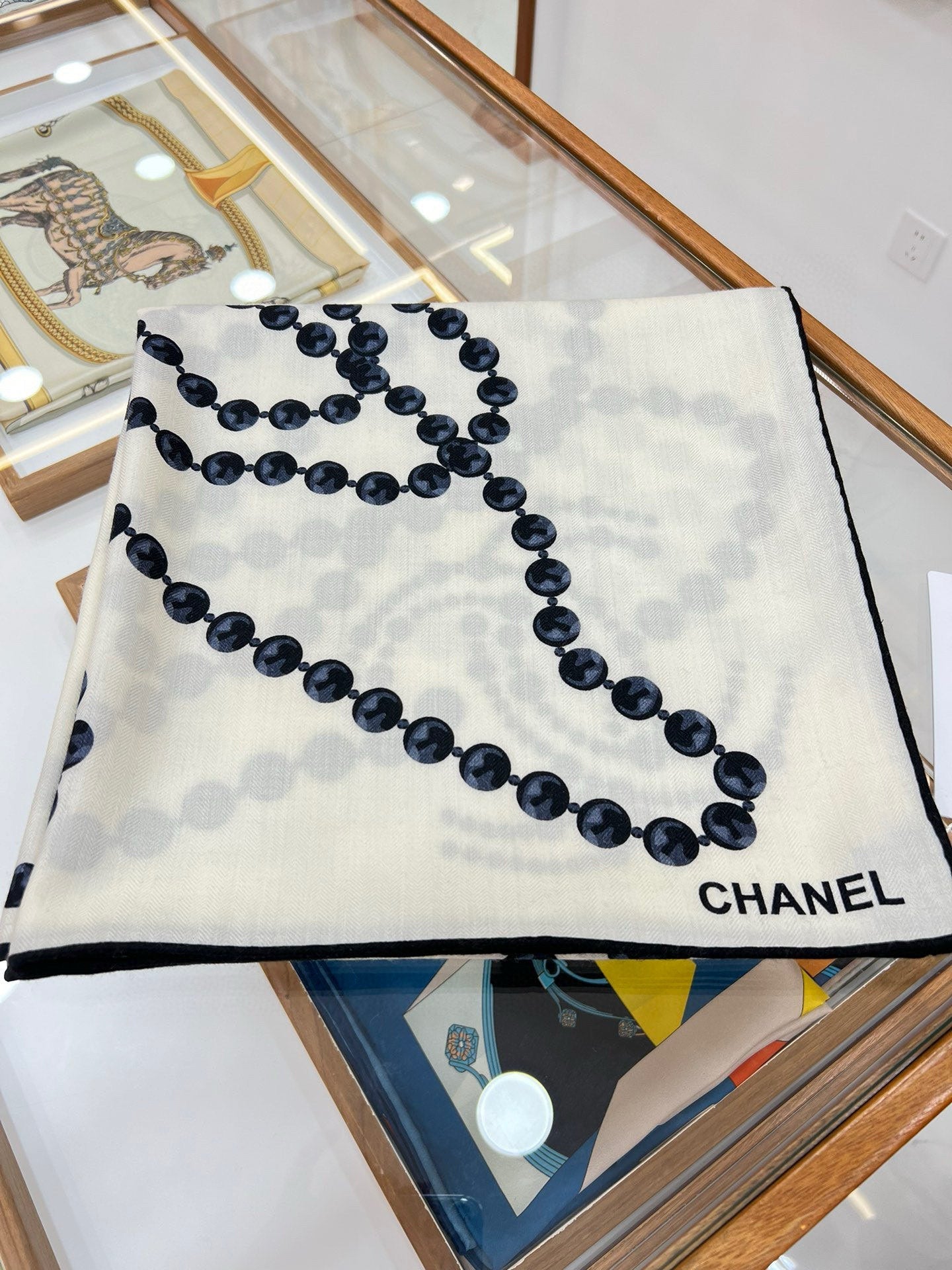 CC Double-Sided Velvet Square Scarf 140cm White Cashmere 828703