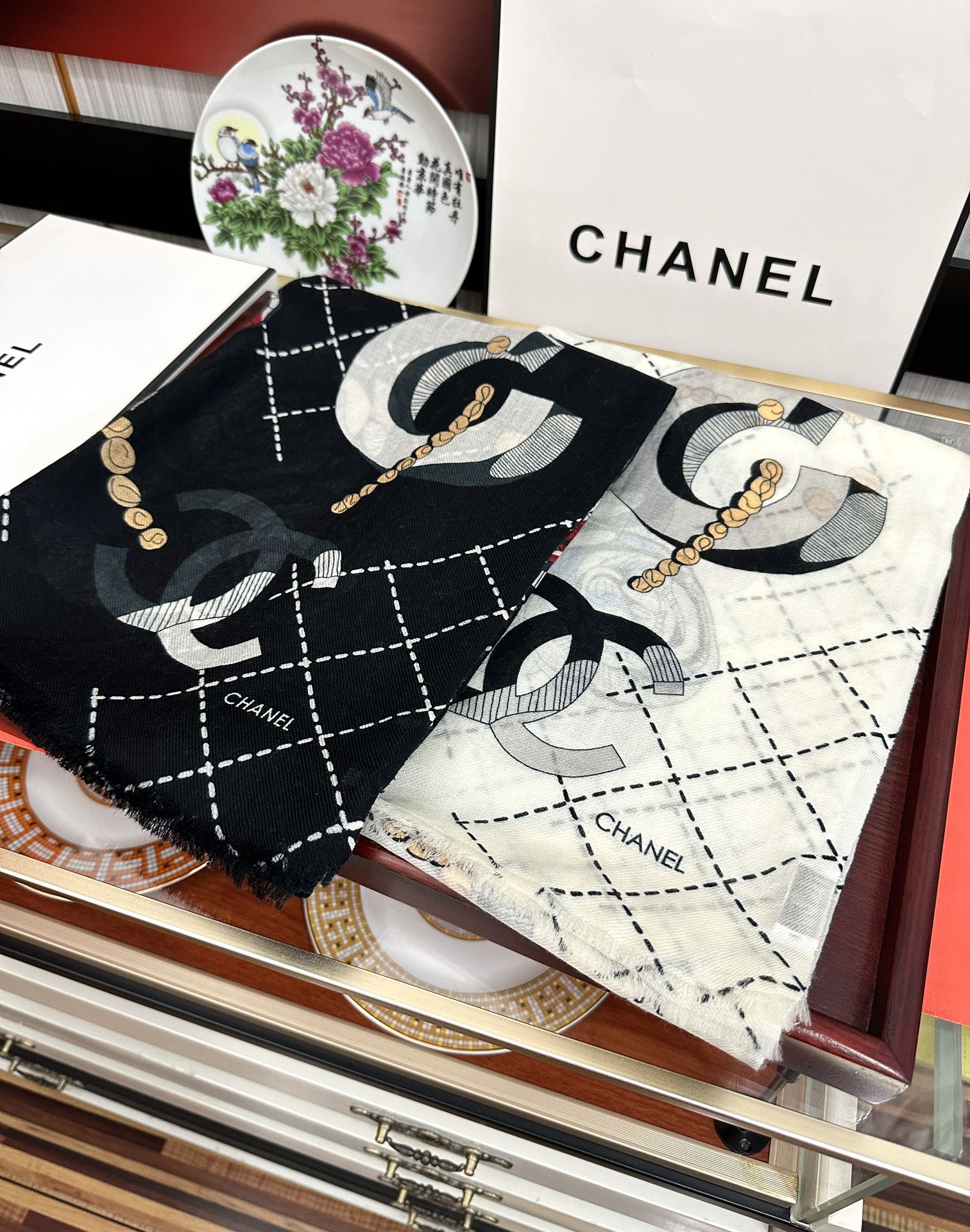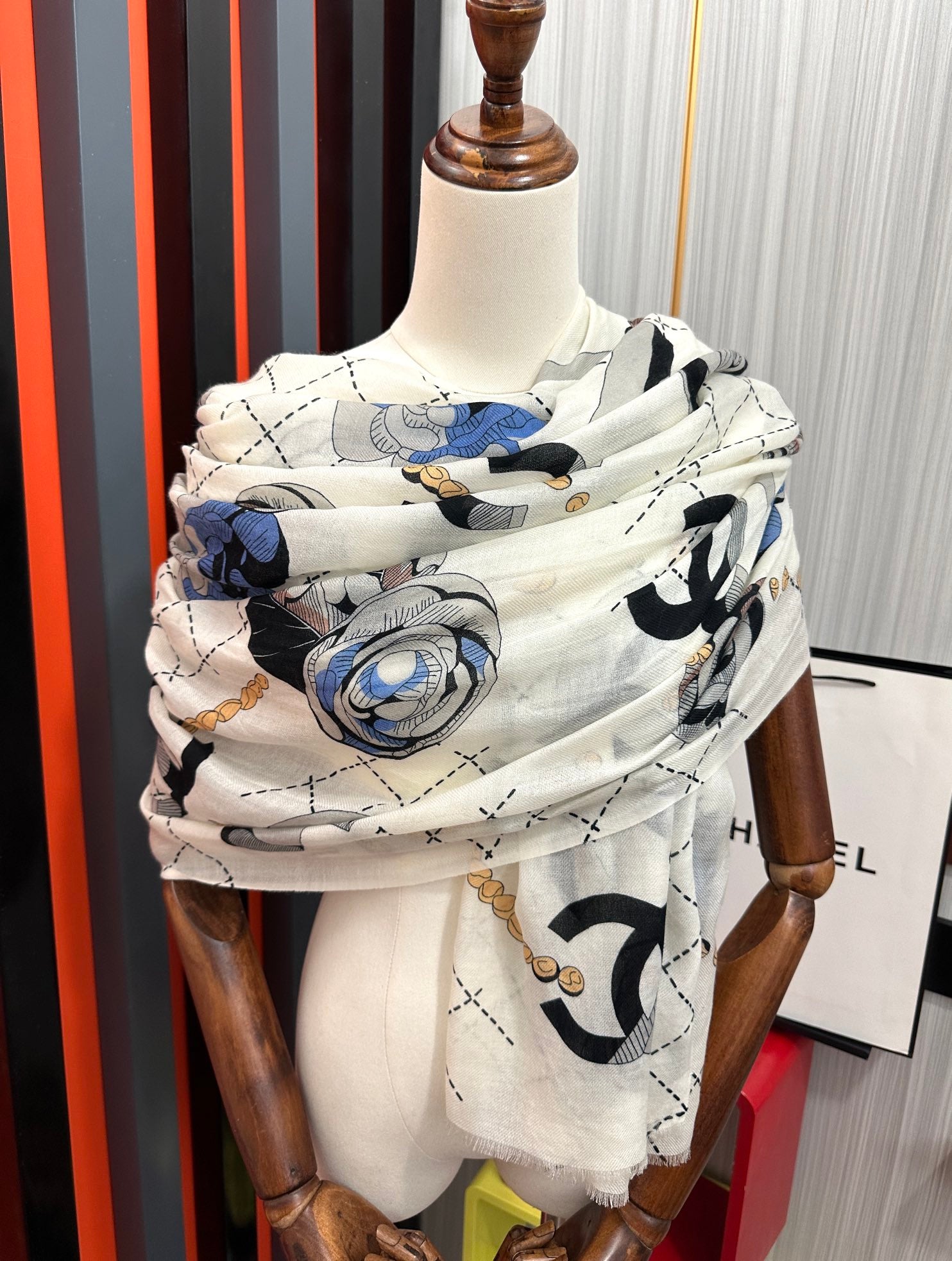 CC Floral Double C Cashmere Long Scarf 828807