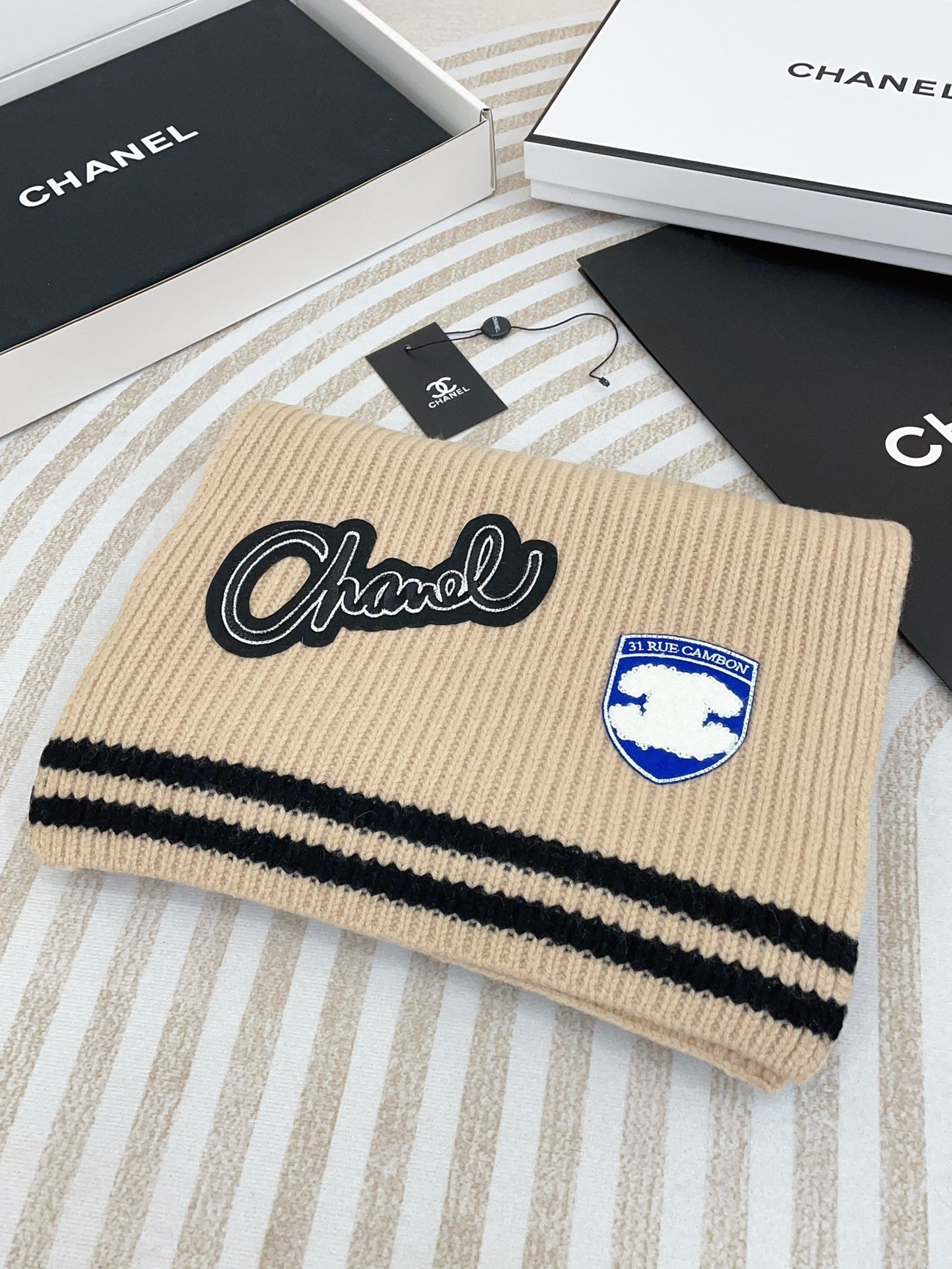 SCARF 180 CM IN TAN BEIGE PURE CASHMERE WITH STICKER 390000