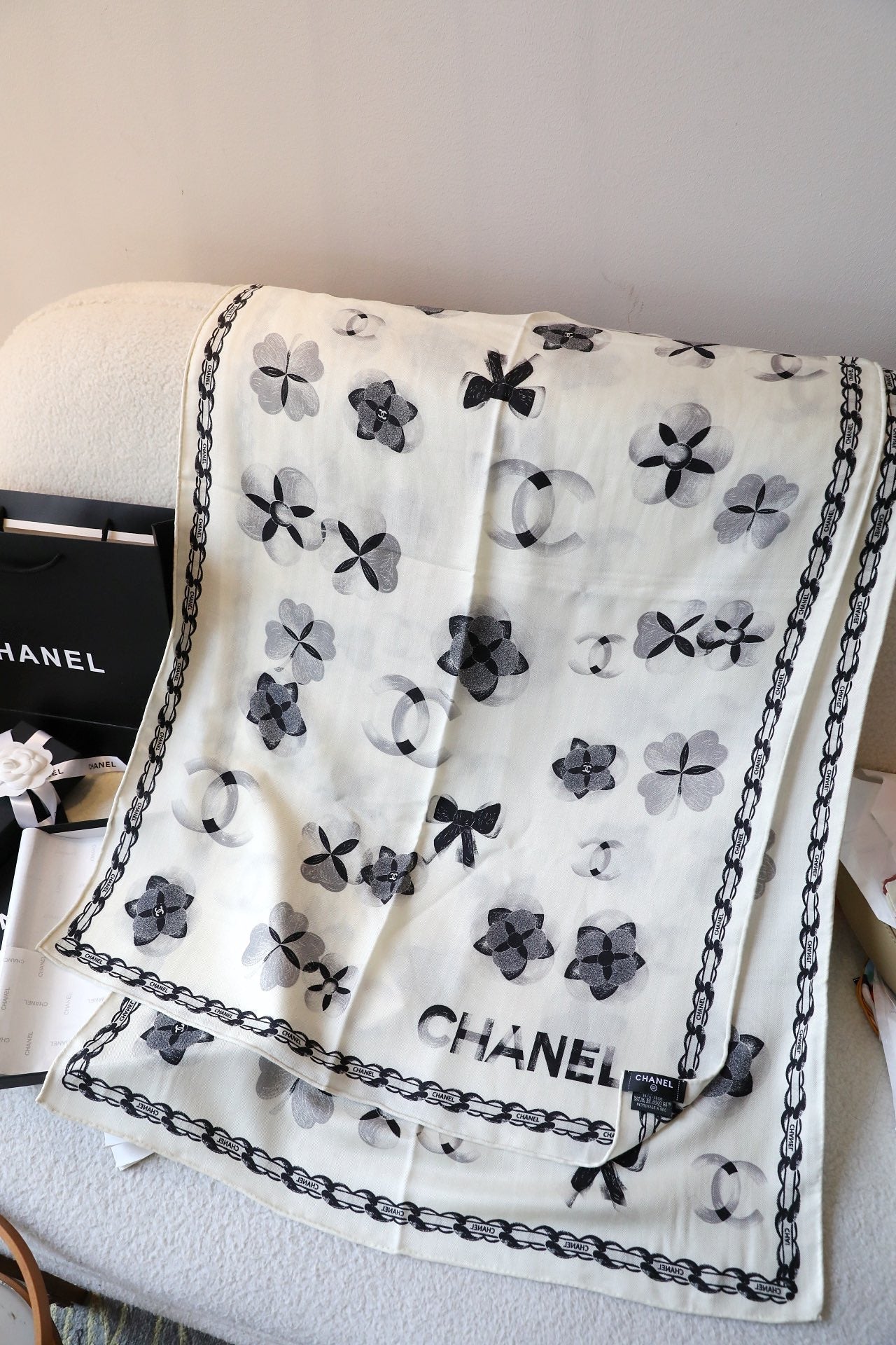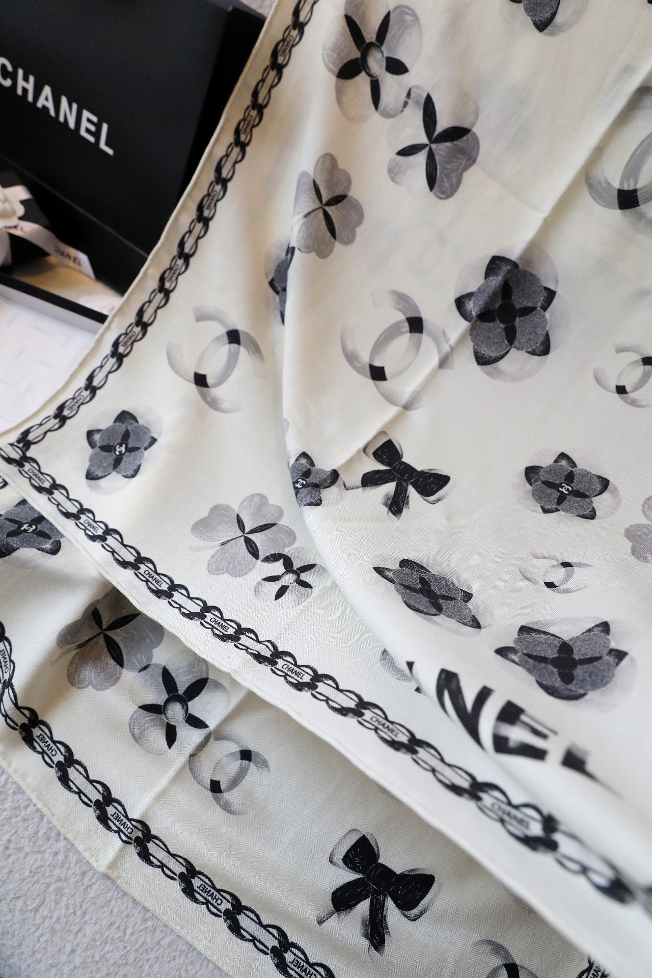 SCARF 180 CM IN WHITE FLOWER MONOGRAM SILK AND CASHMERE 401133