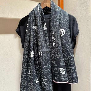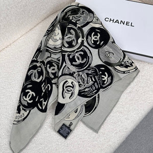 SQUARE SCARF 70 CM IN BLACK MIX WHITE CASHMERE AND SILK 399802