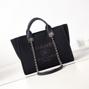 CC Deauville Tweed Bag 33x24x14.5cm Black Leather Gold Hardware 36