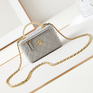 CC 25C Vanity Top Handle 17cm White Grained Calfskin Light Gold Hardware
