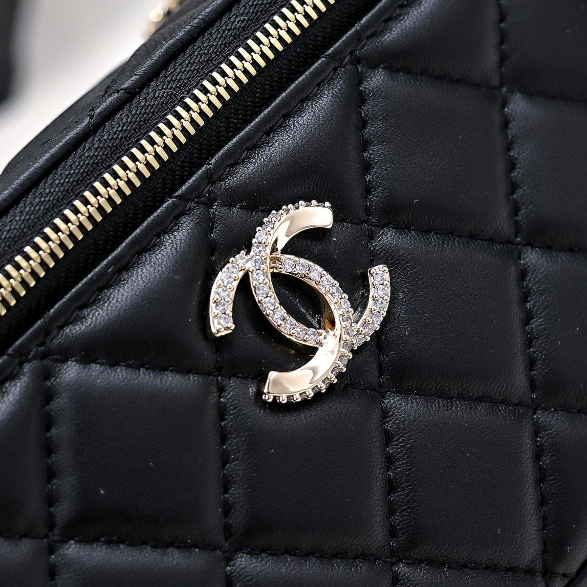 CC 24K Vanity Top Handle 17cm Black Lambskin Silver Hardware