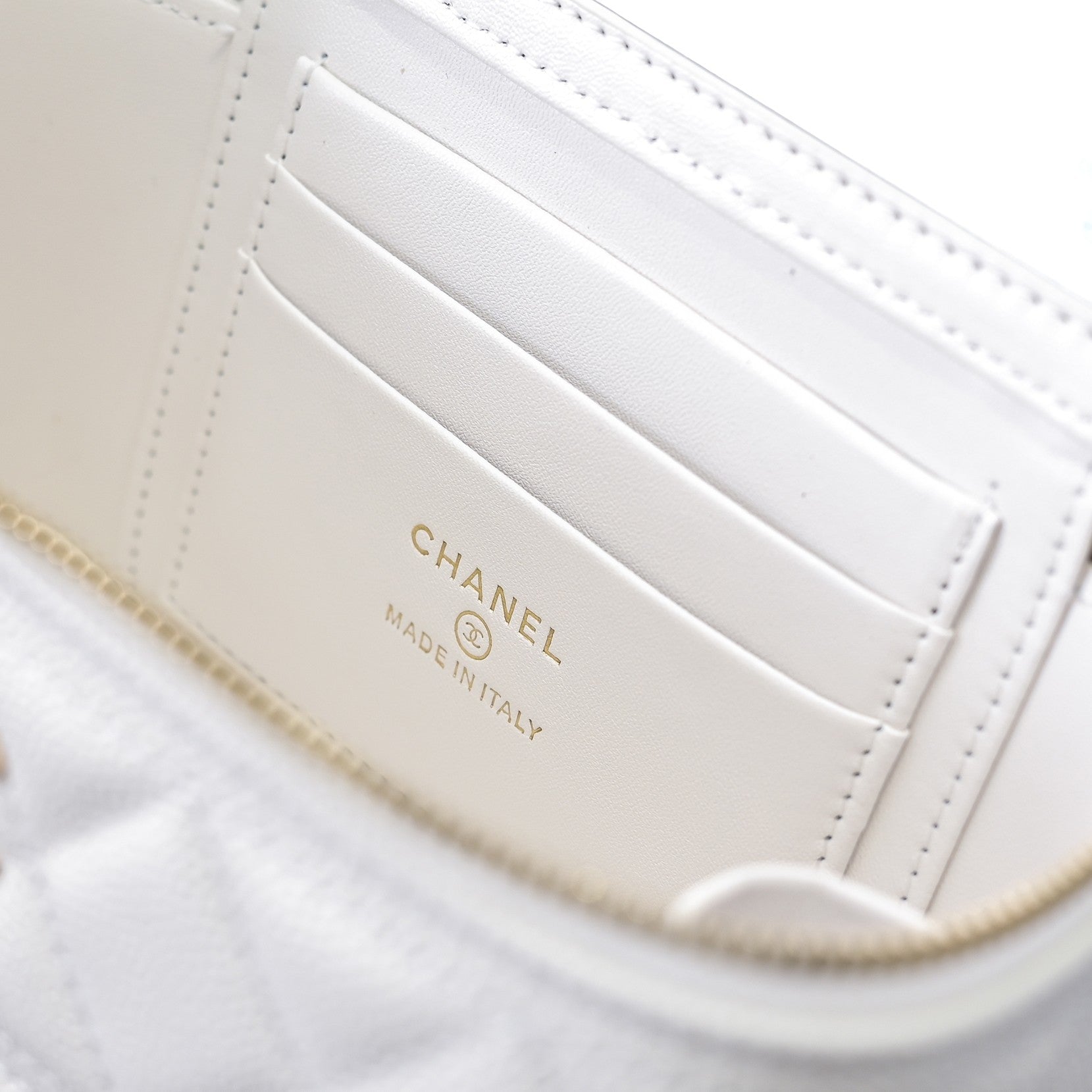 CC 25C Vanity Top Handle 17cm White Grained Calfskin Light Gold Hardware