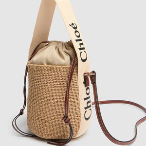 Chloe Small Woody Bucket Top Handle Bag 16cm Brown Linen And Calfskin