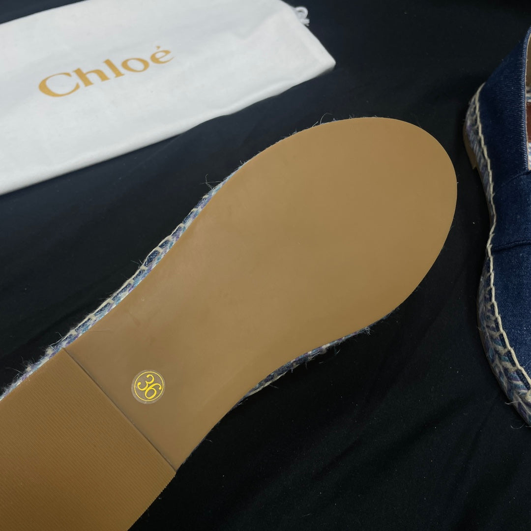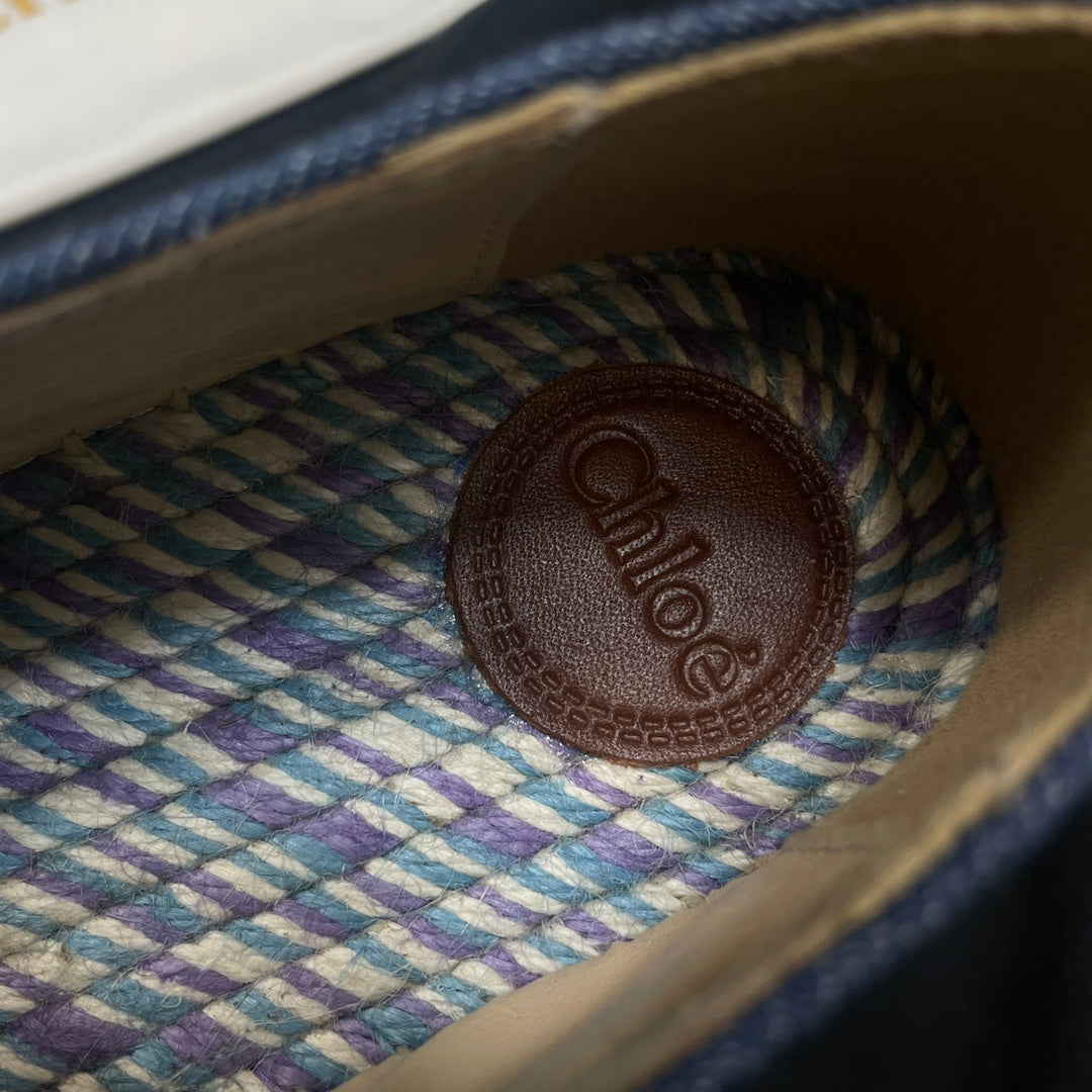 CHLOÉ WOVEN LOAFER IN NAVY BLUE DENIM AND COLORFUL RAFFIA
