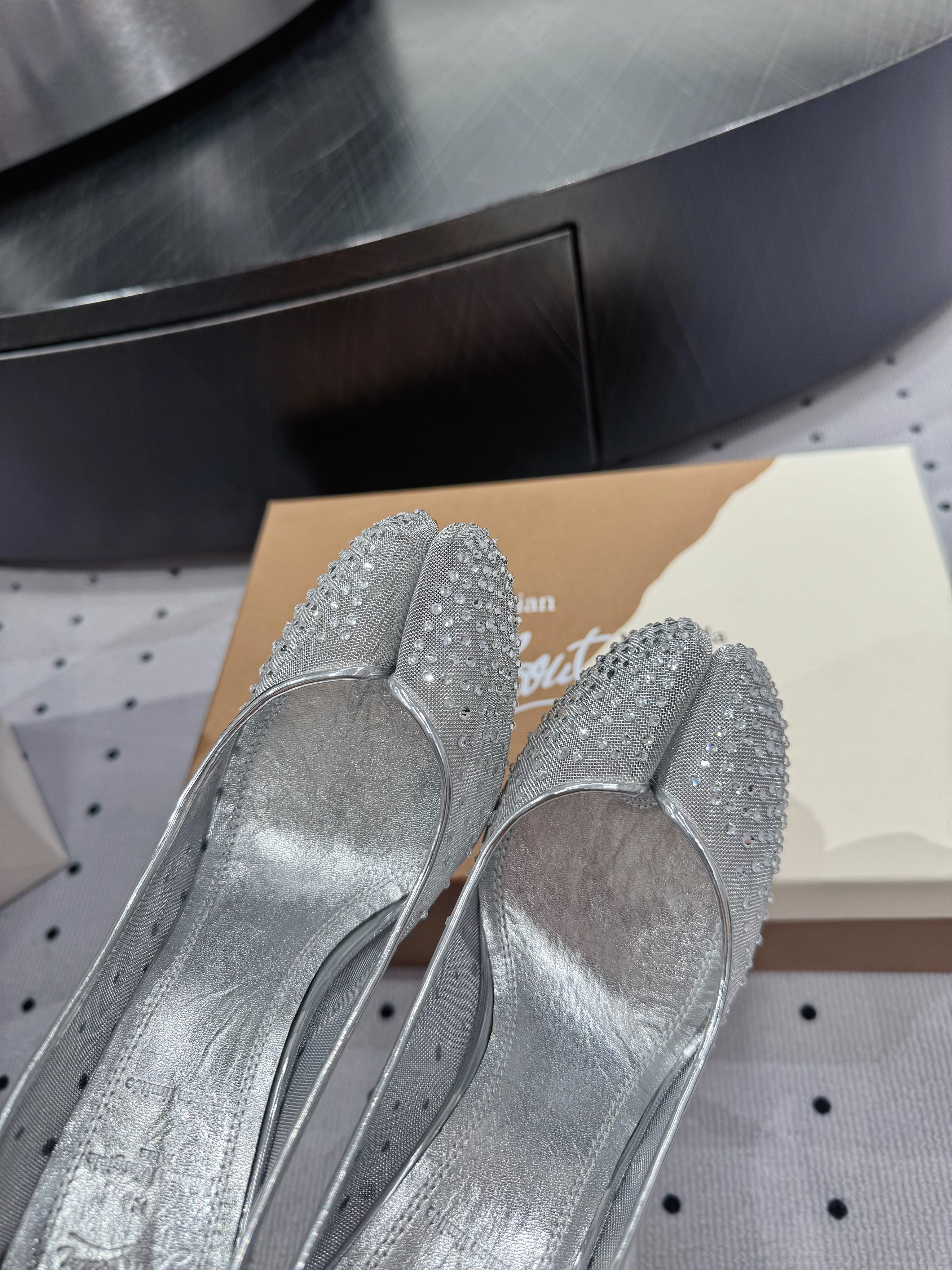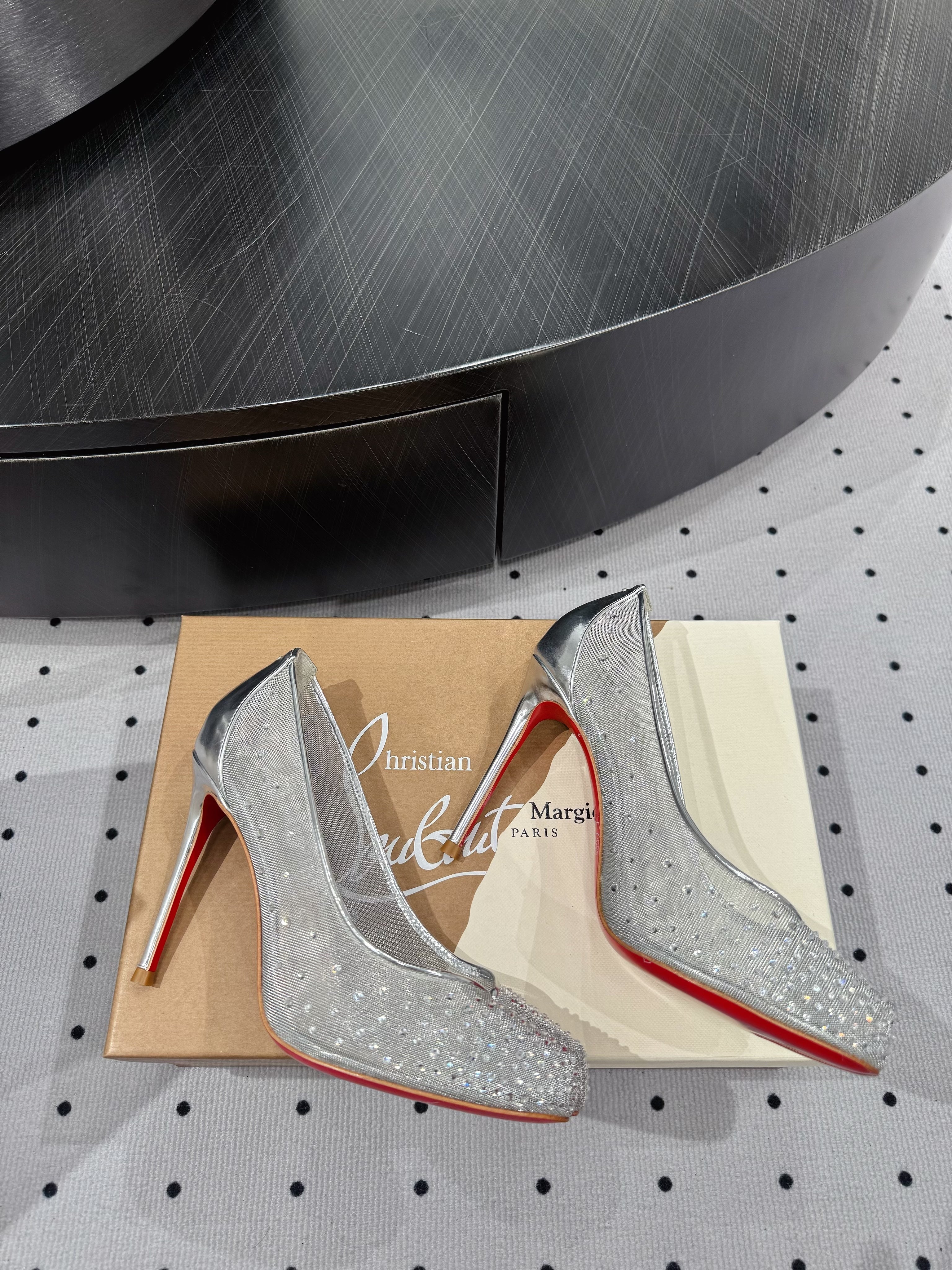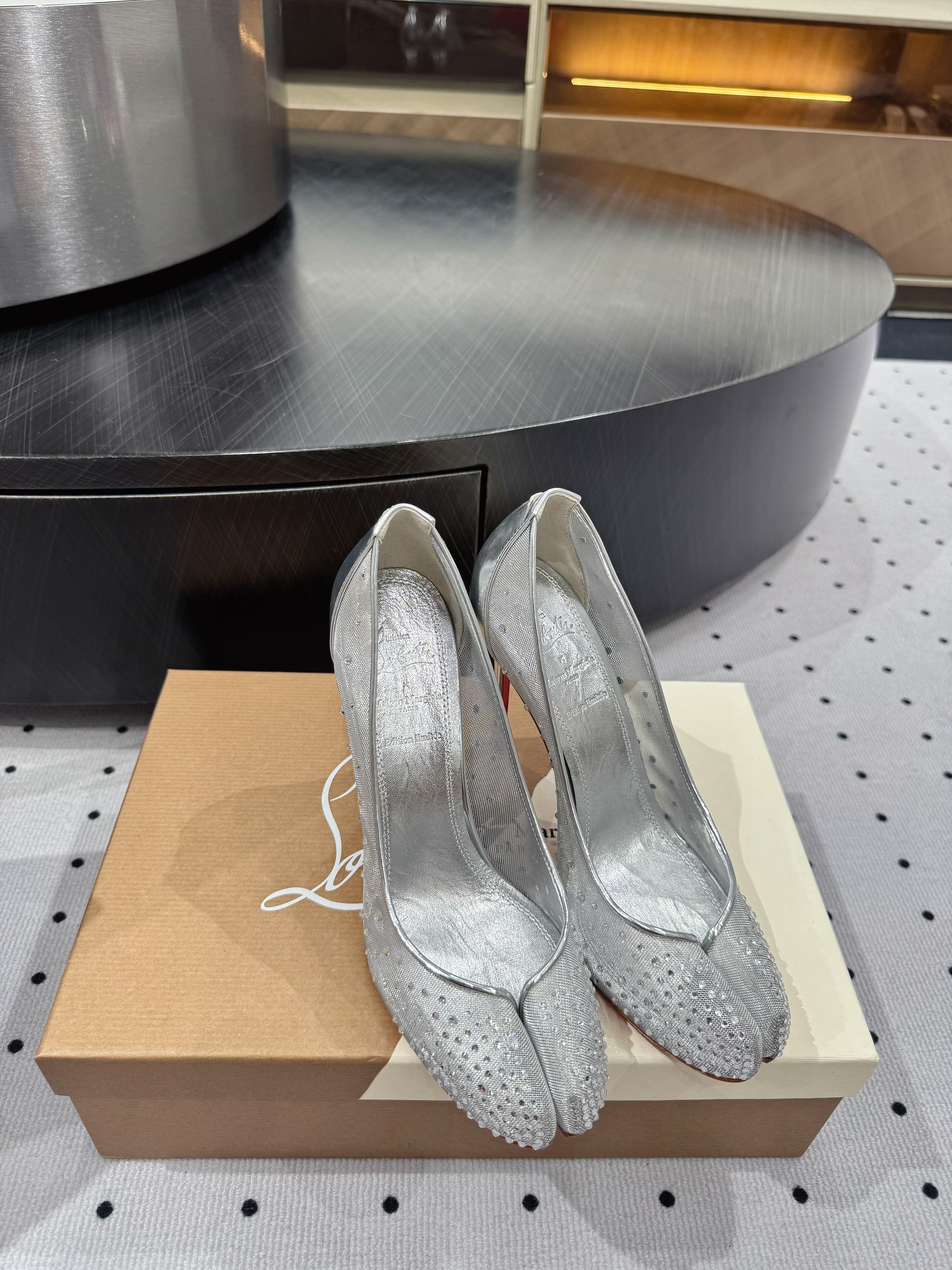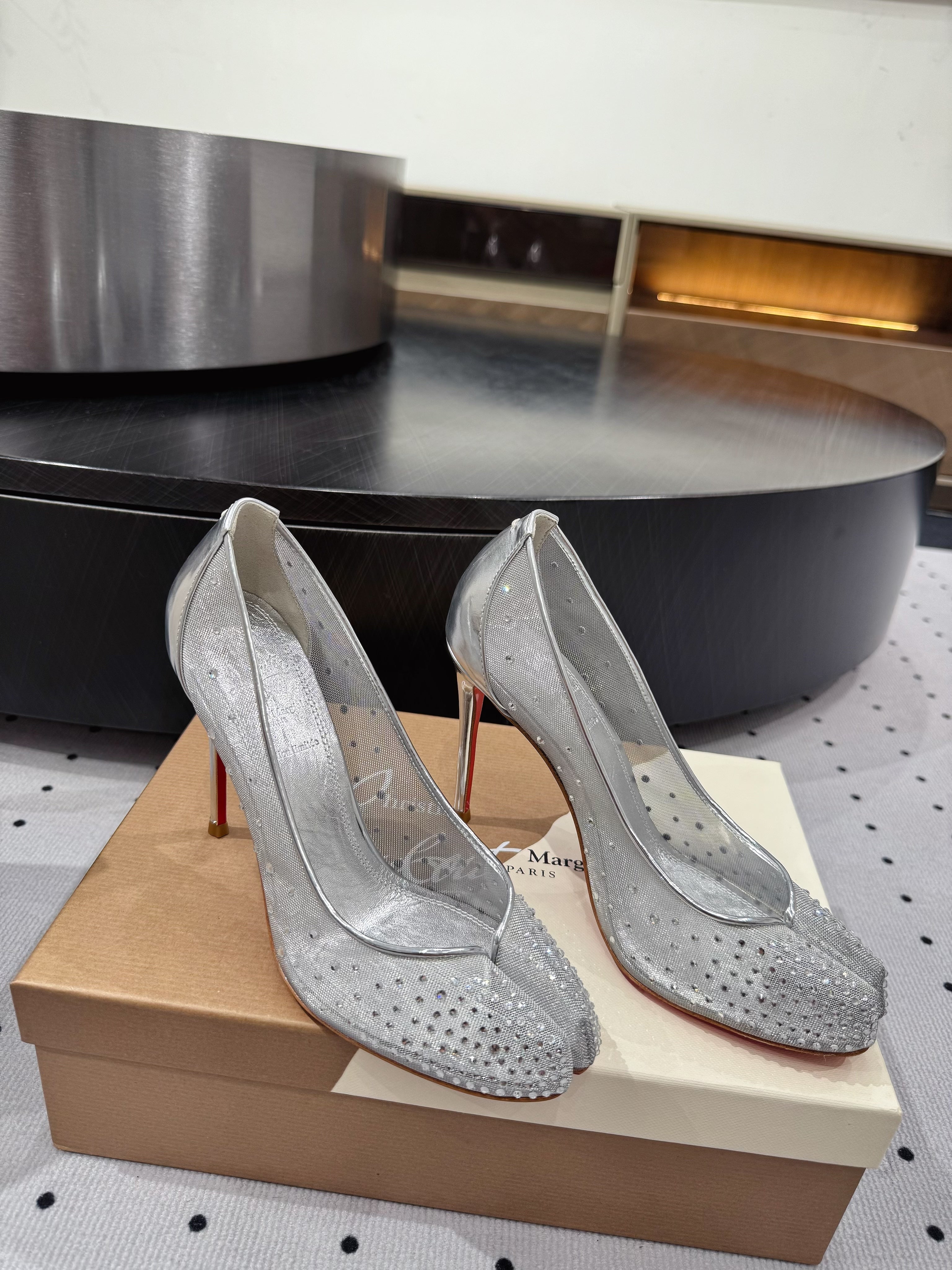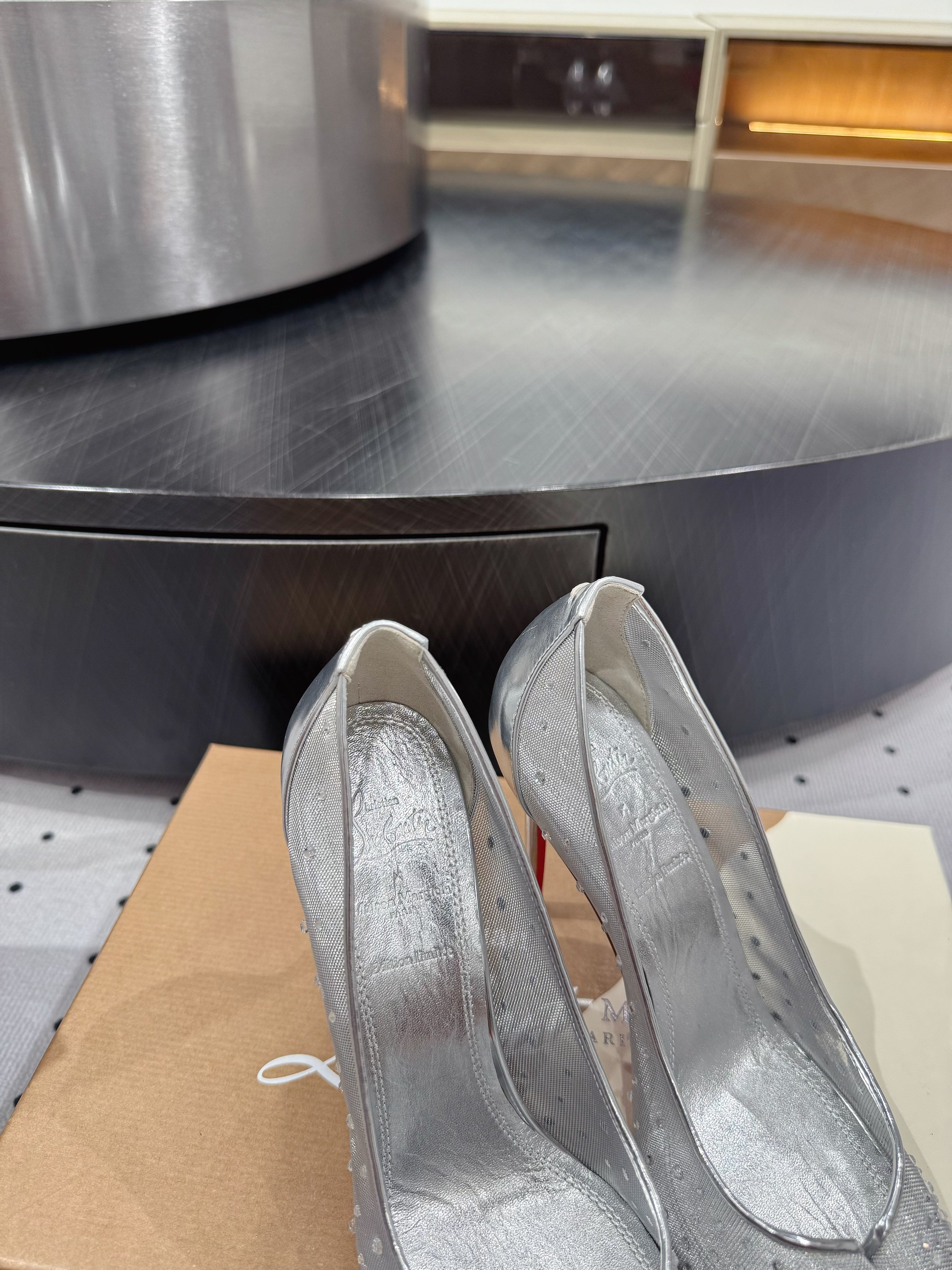 CL x Margiela 25 Diamond Pumps Sliver Fabric Lace Swarovski 296039