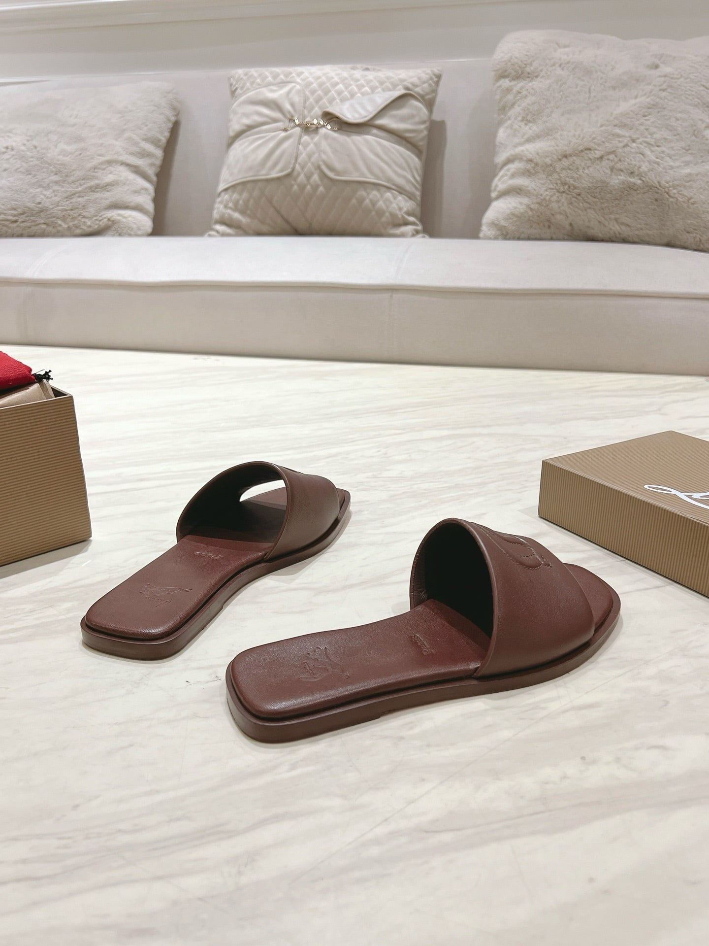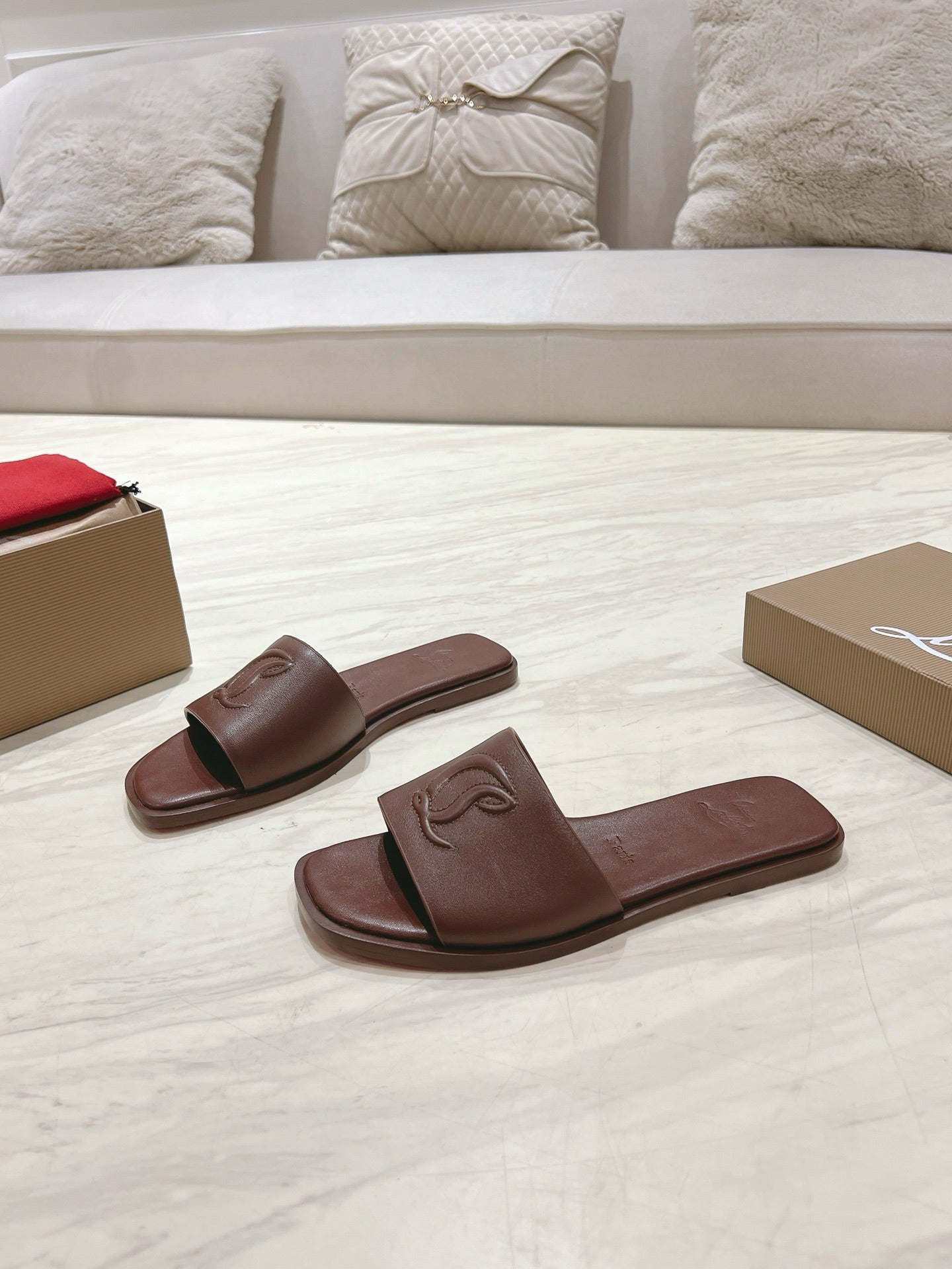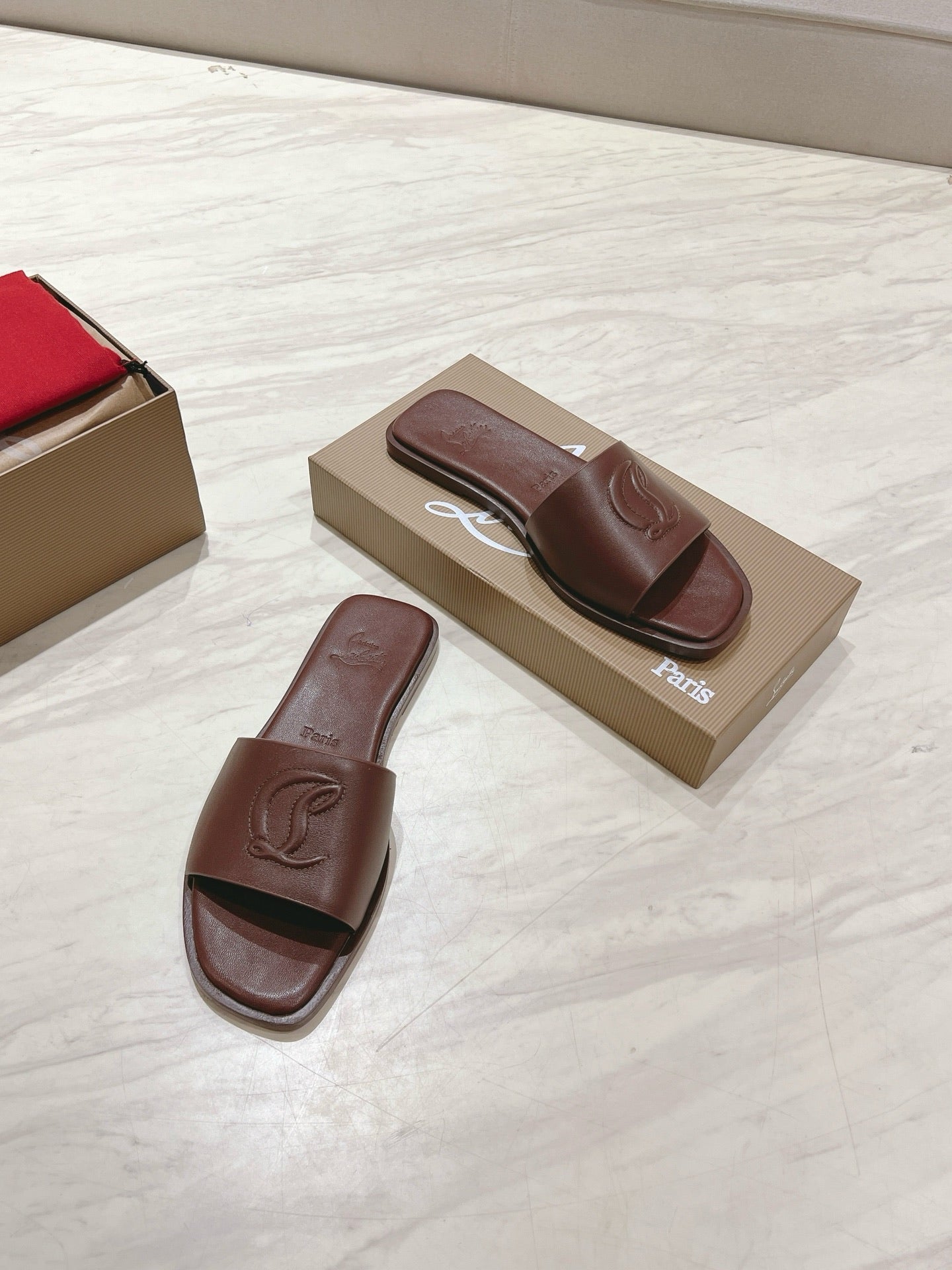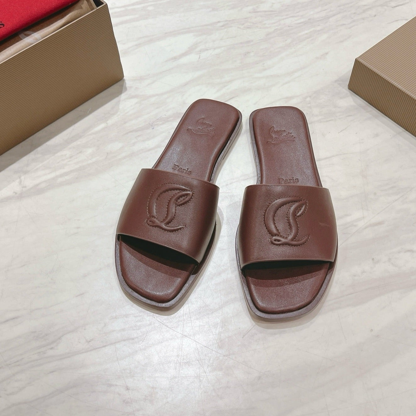 CL 25 Slippers Dark Brown Top Layer High Gloss Calfskin 307501