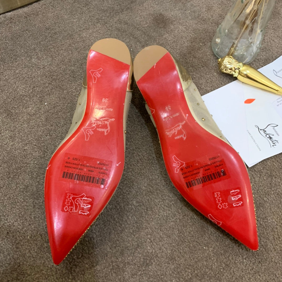CL Follies Strass Flats Mesh Leather Gold