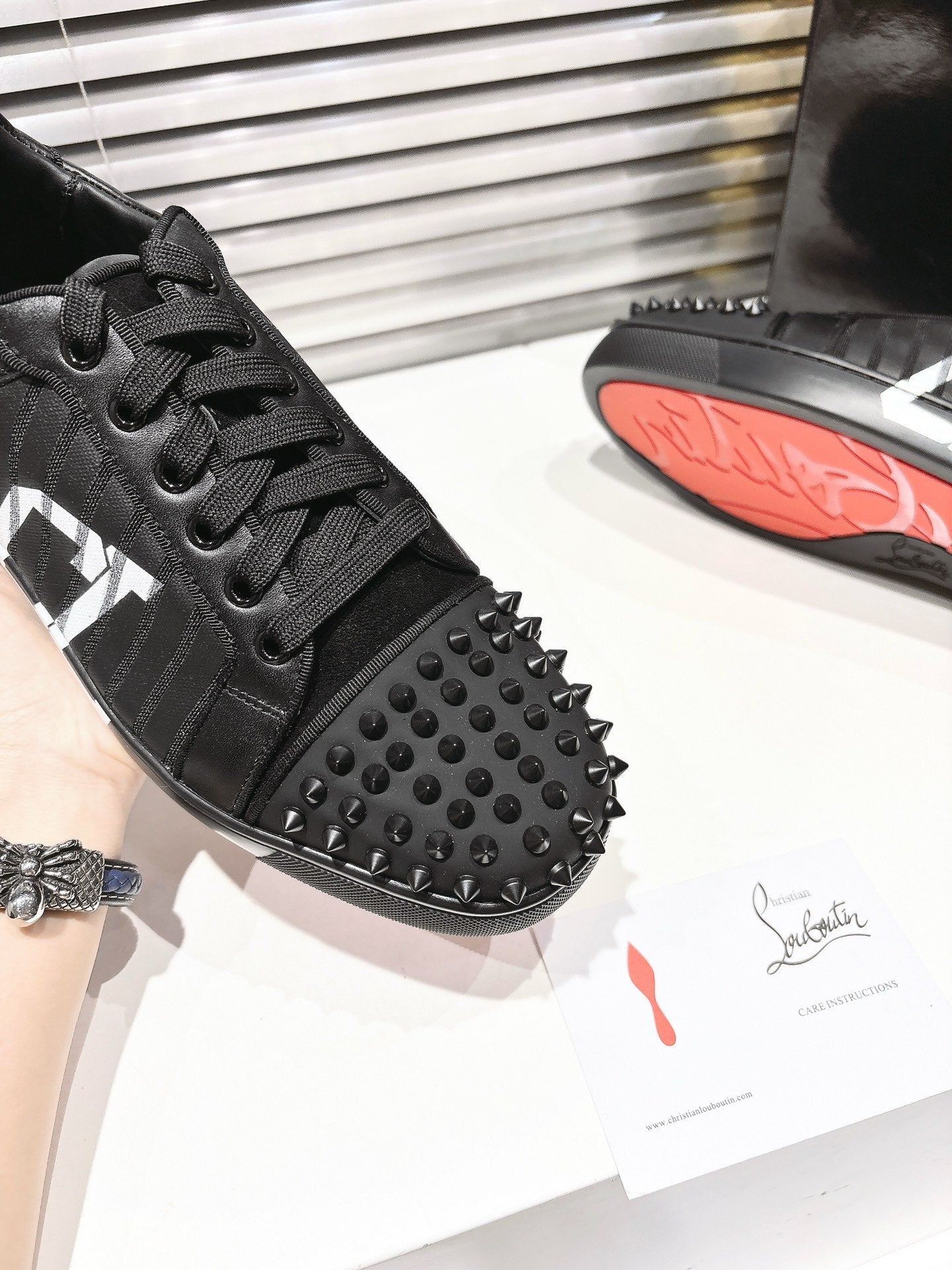 CL 25 Stud Print Sneaker Black Fabric Leather 323161