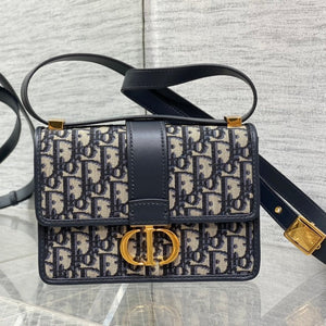 SMALL 19 MONTAIGNE AVENUE TOP HANDLE BAG BLUE DIOR OBLIQUE JACQUARD AND BLACK SMOOTH CALFSKIN
