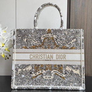 BOOK TOTE 36 BEIGE AND BLACK MISS DIOR GRAFFITI EMBROIDERY