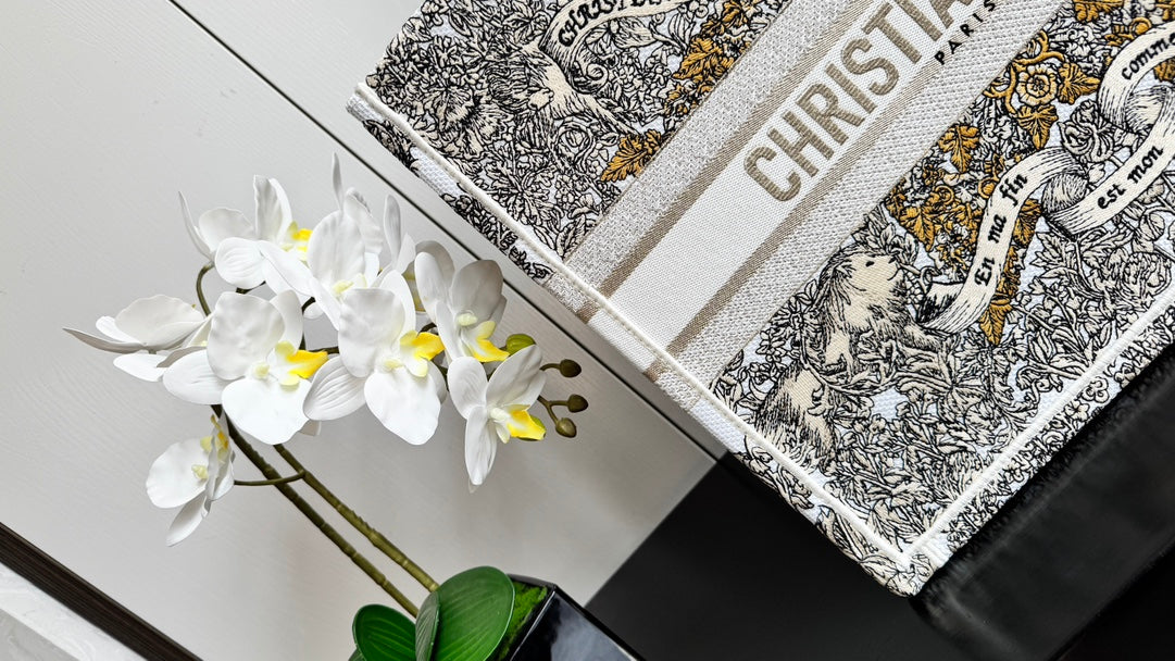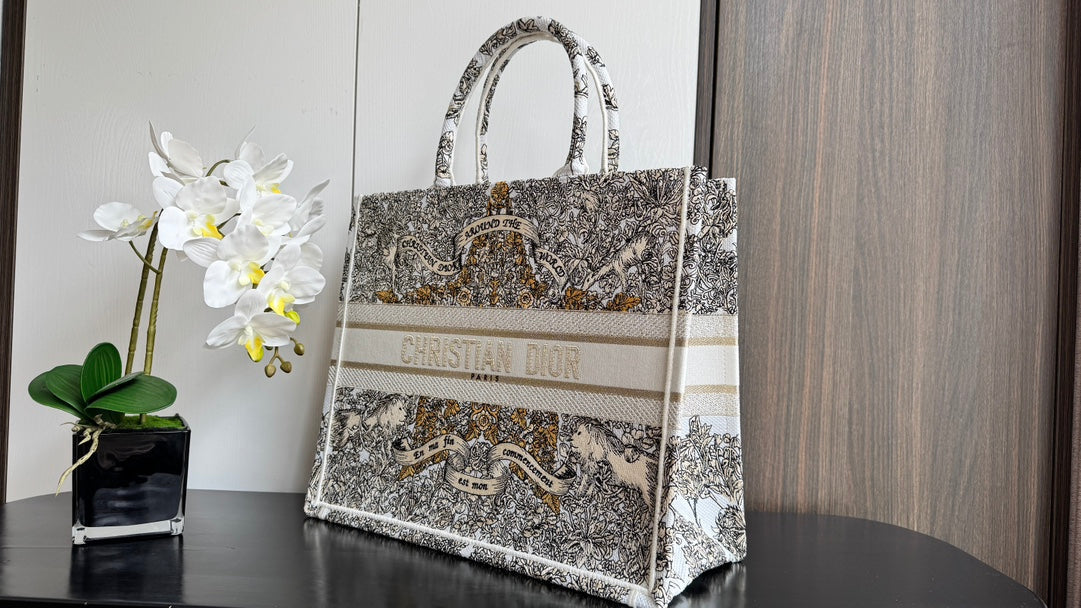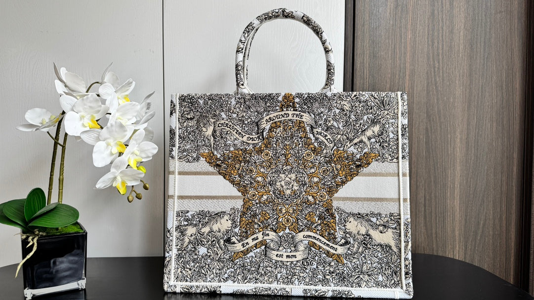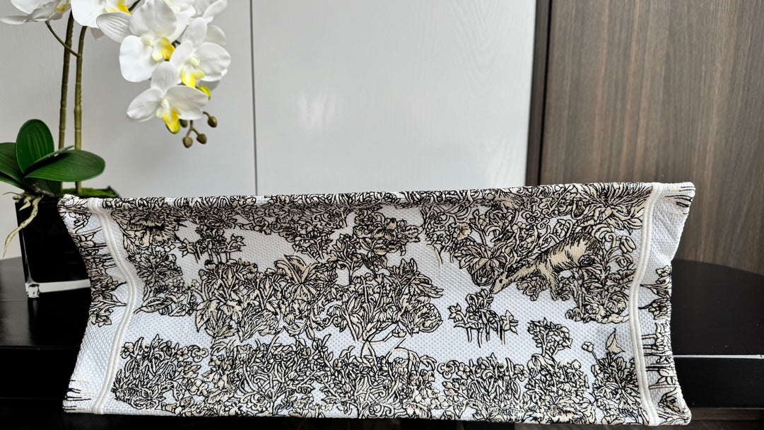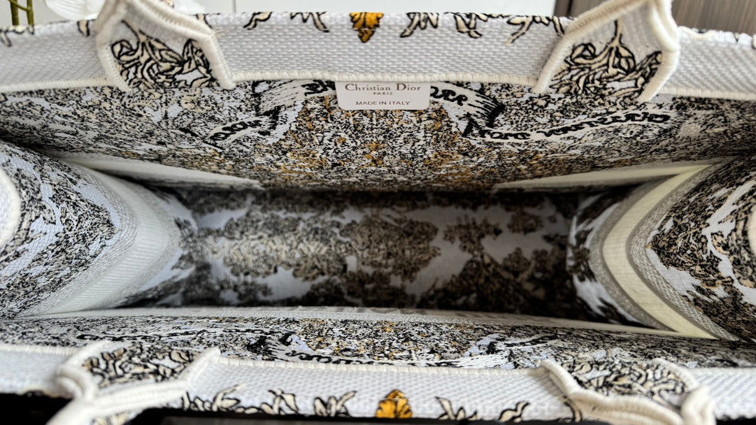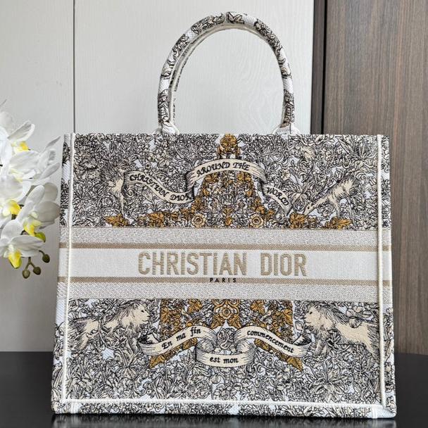 CD Book Tote 41.5 Beige White Canvas Around The World