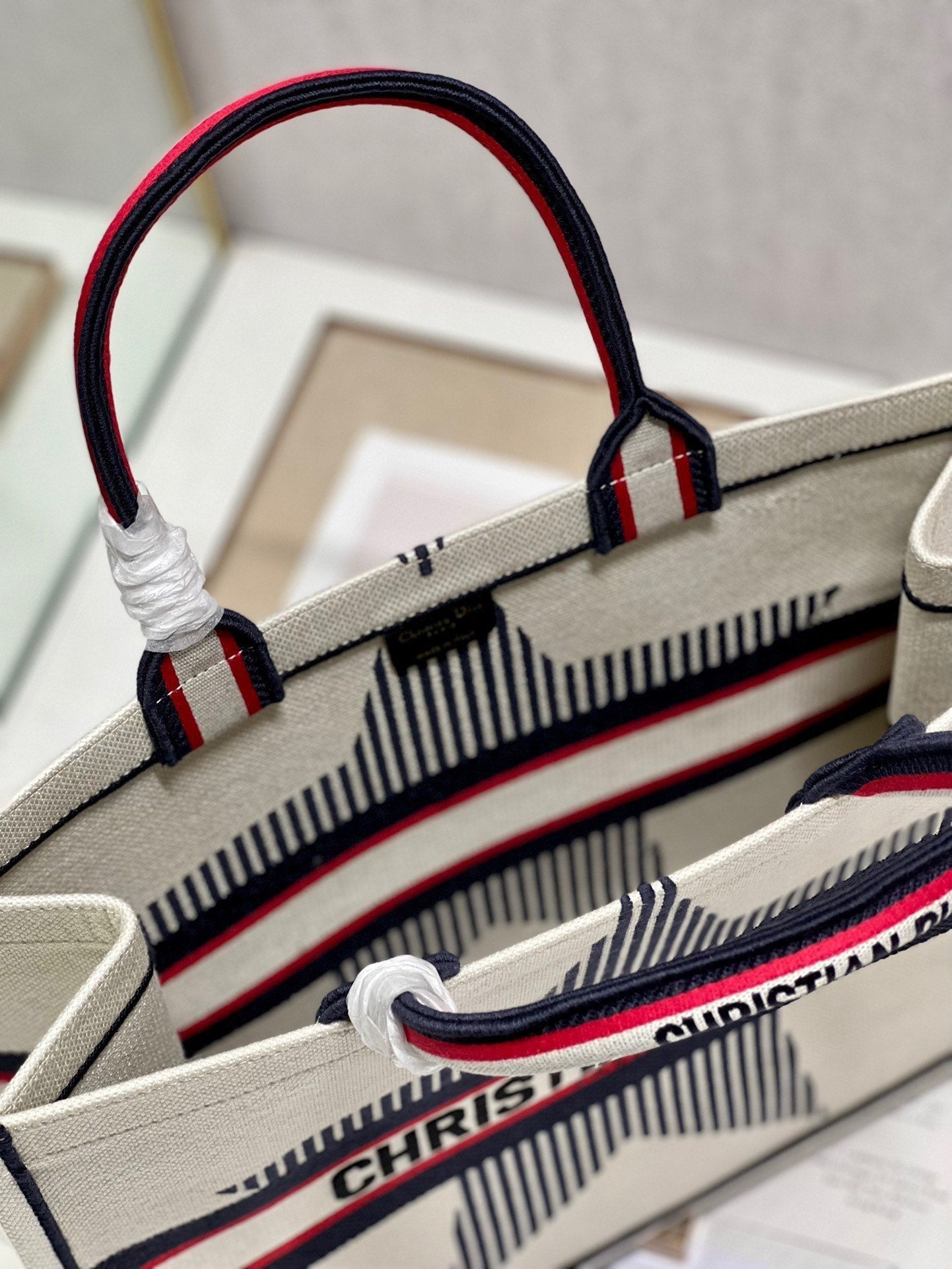 CD White five-pointed Star Book Tote 42cm Bag Canvas 336564
