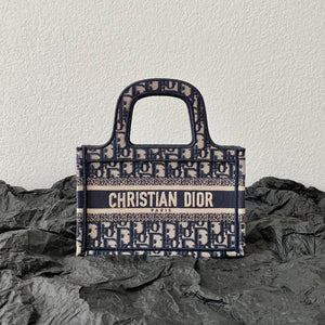 cd mini book tote 21.5 beige blue oblique embroidery calfskin