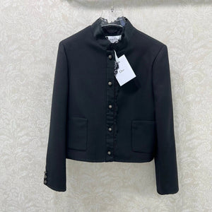 CD 25FW Stand Collar Black and White Contrast Polyester Suit Jacket