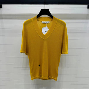 DIOR V-NECK KNITTED SHORT-SLEEVE T-SHIRT YELLOW 274935