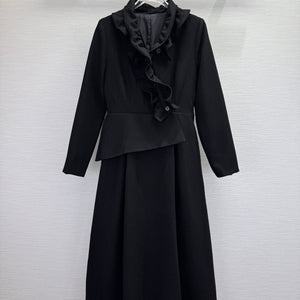 CD 25SS Ruffled V-neck Dress Black Wool 306508