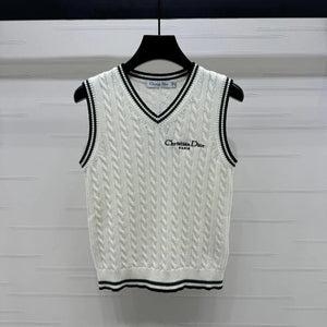 DIOR KNITTED V-NECK SLEEVELESS VEST WHITE 274923