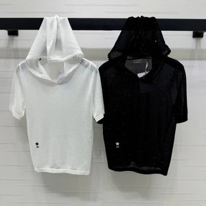 DIOR SHORT-SLEEVE LACE-KNIT HOODIE 274811