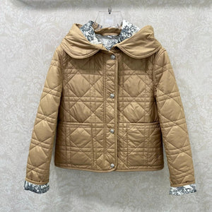 CD 25SS Lapel Middle Zipper Guilted Four Pockets Contrast Color Dress Beige Wool 304161