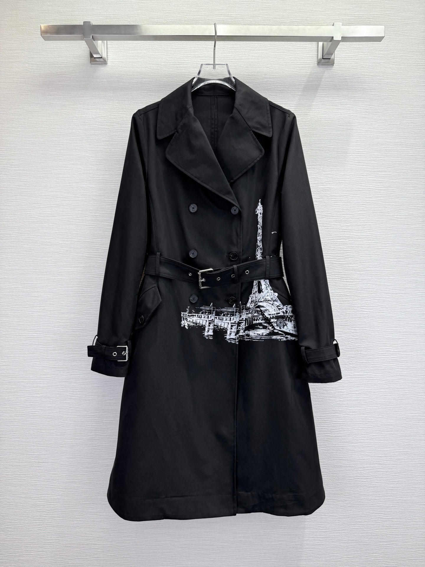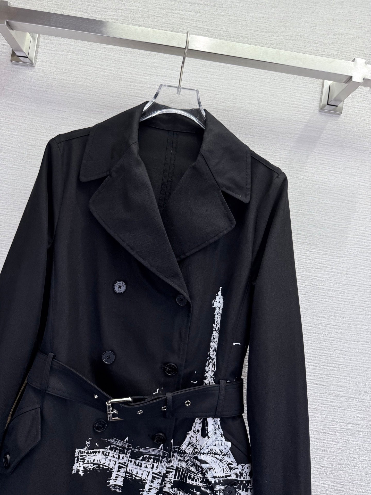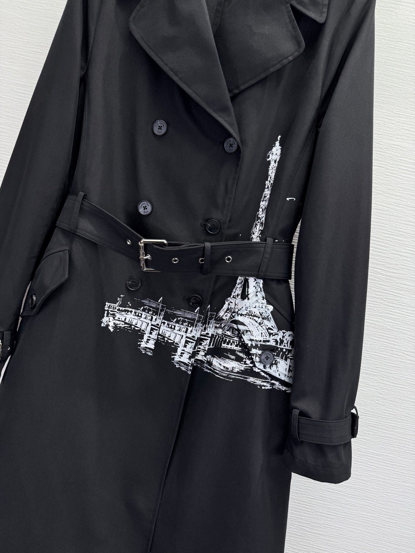 CD 25SS Eiffel Tower Long Trench Coat Black Cotton 306565