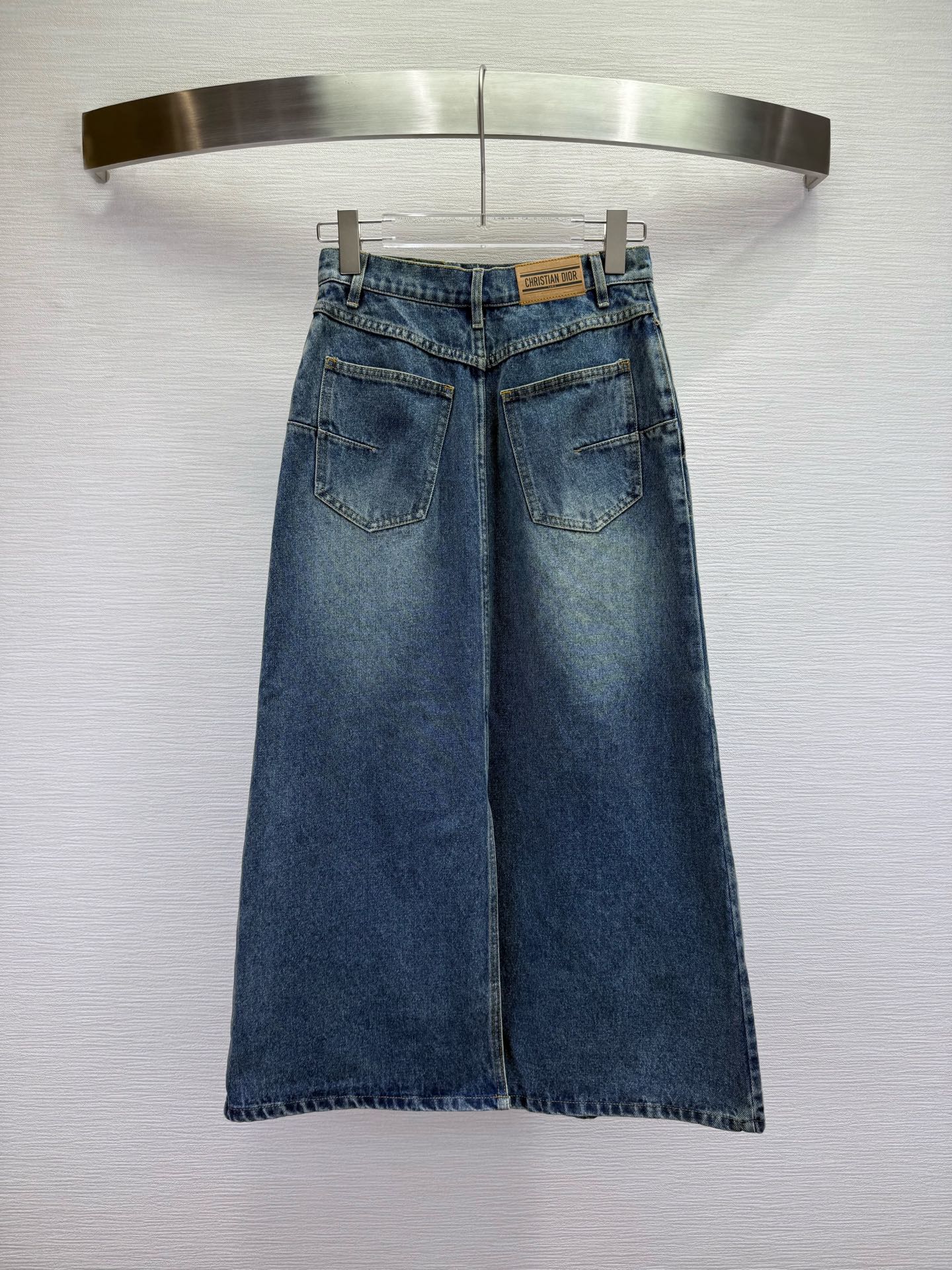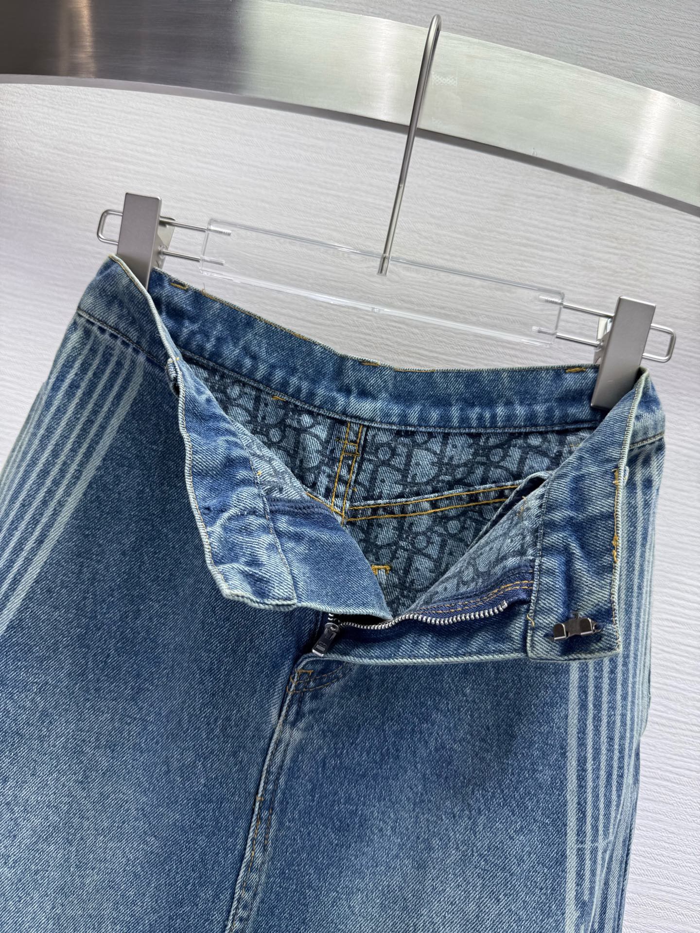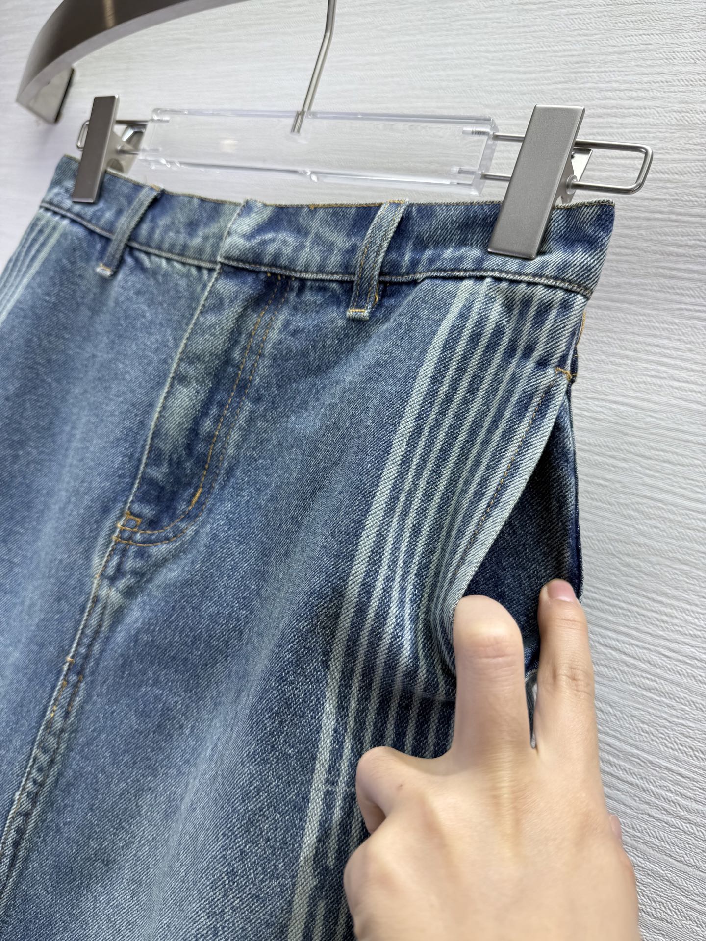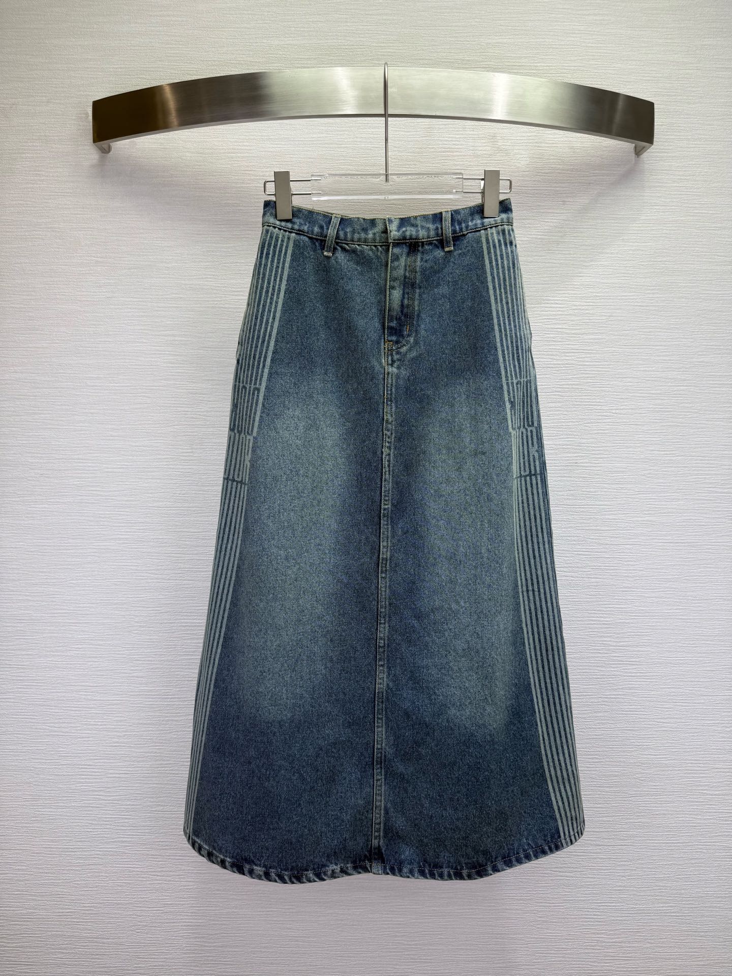 CD 25SS Laser Printed Stripe Pattern Denim Skirt Blue Cotton 306525