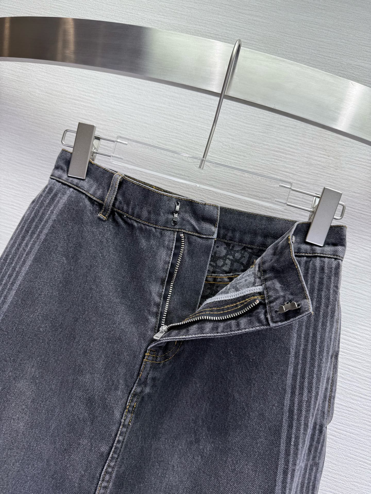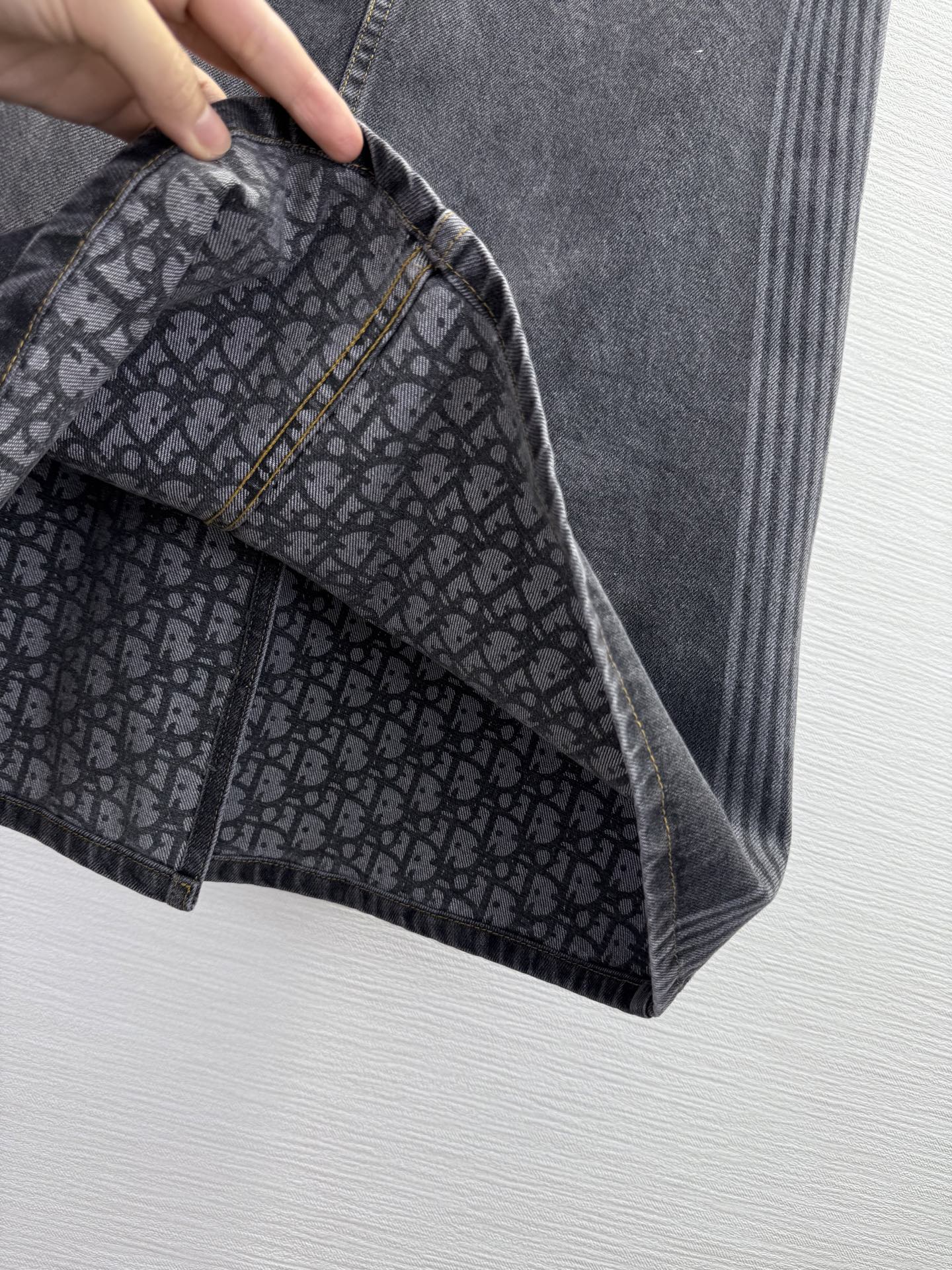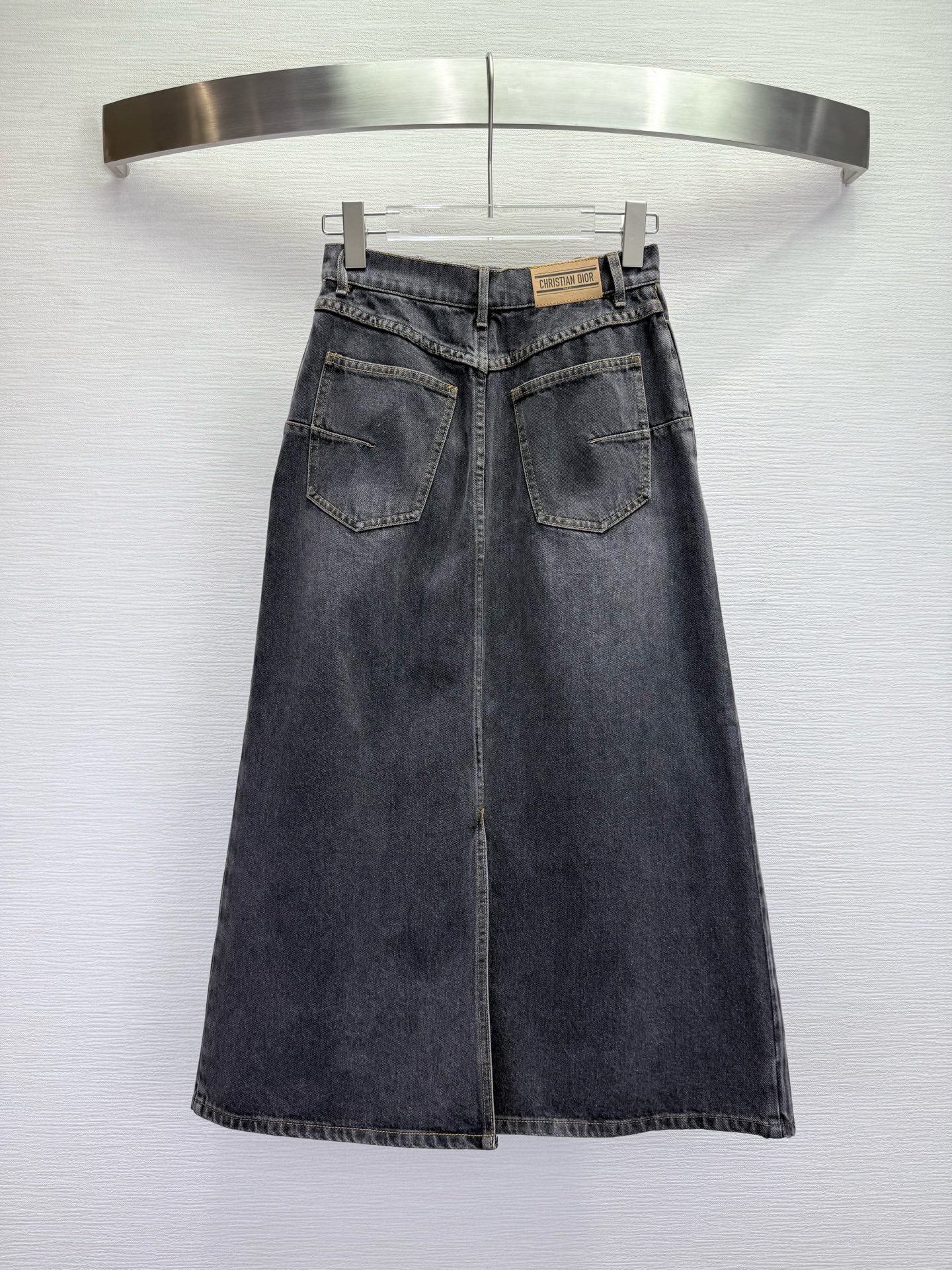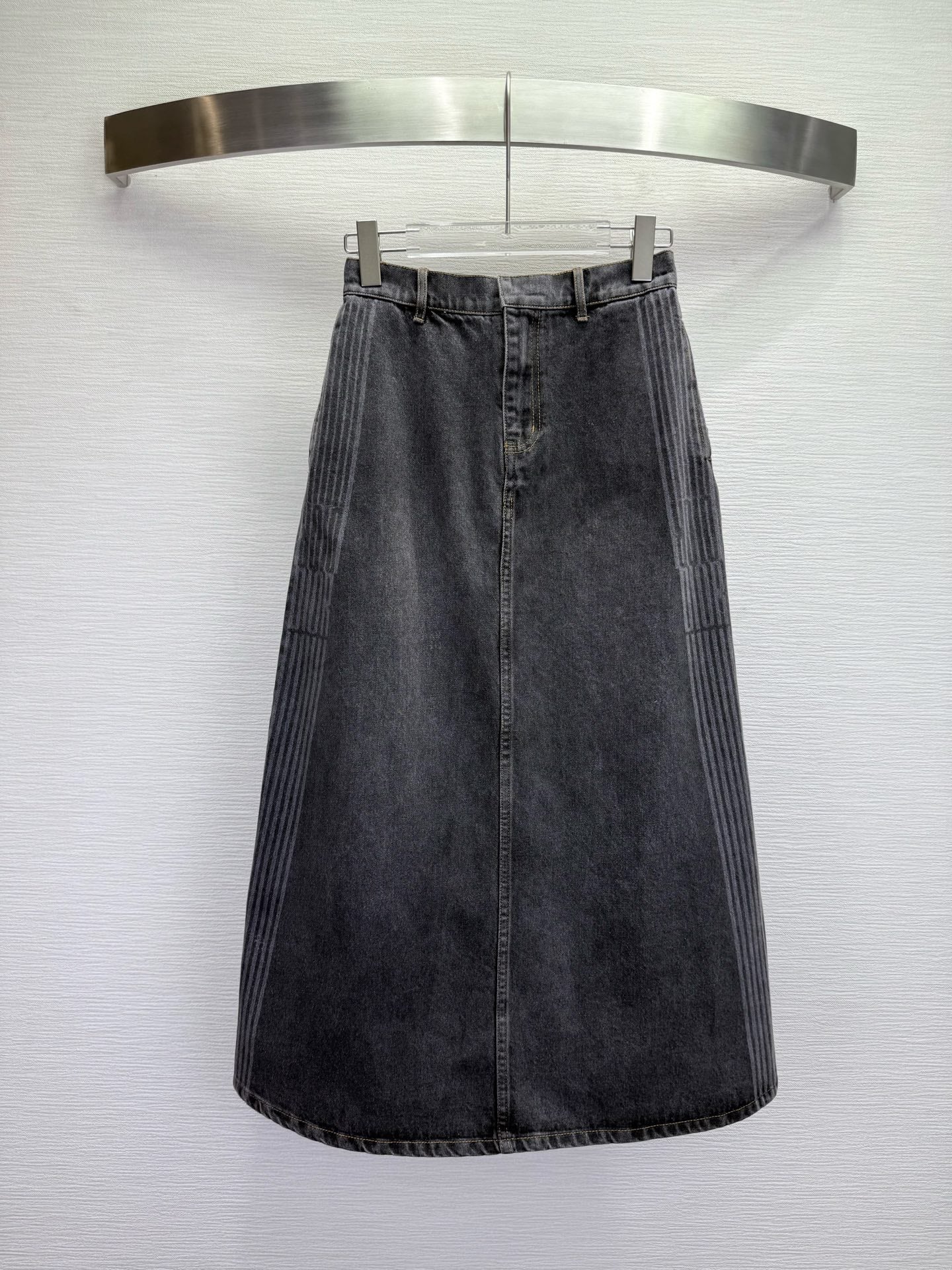 CD 25SS Laser Printed Stripe Pattern Denim Skirt Dark Gray Cotton 306522