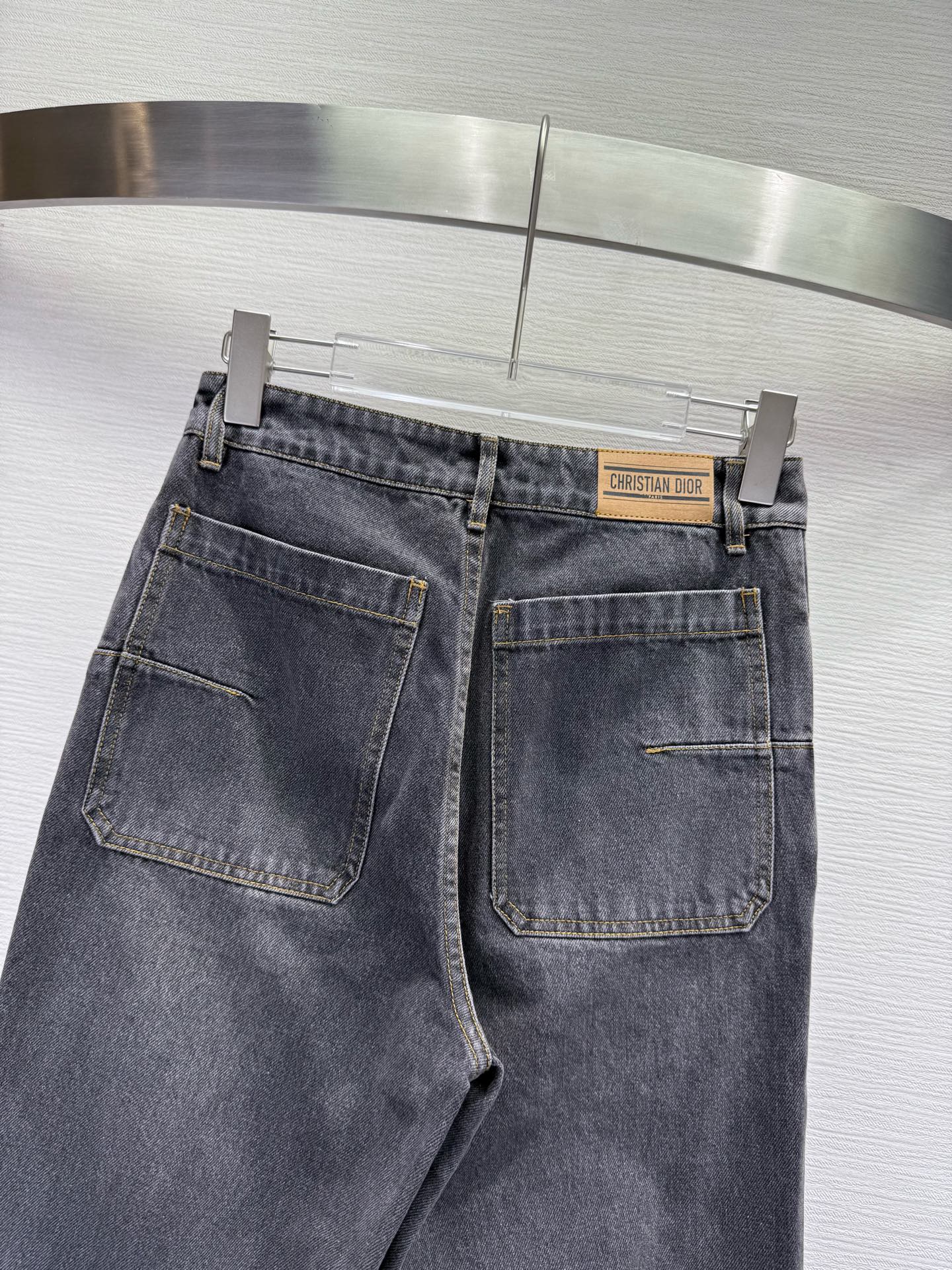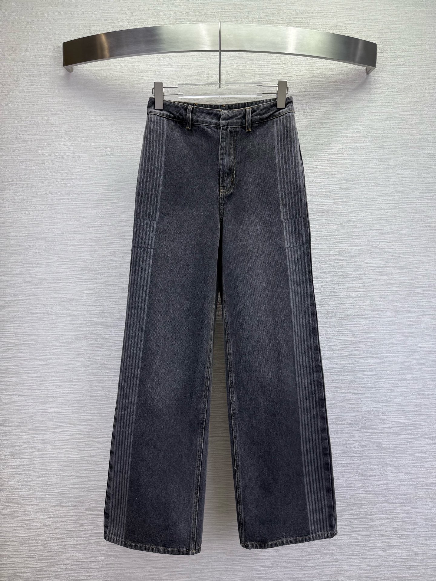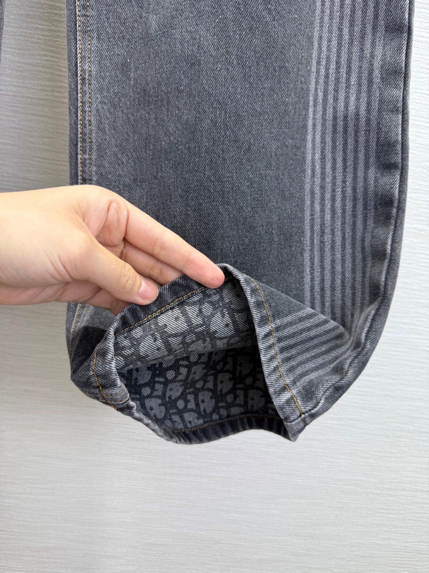 CD 25SS Laser Printed Stripe Pattern Wide-Leg Jeans Dark Gray Cotton 306514