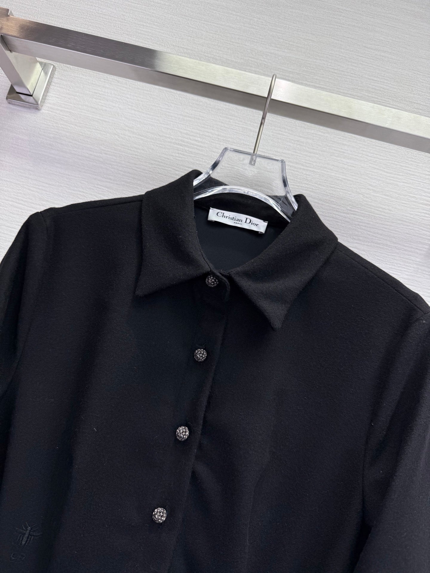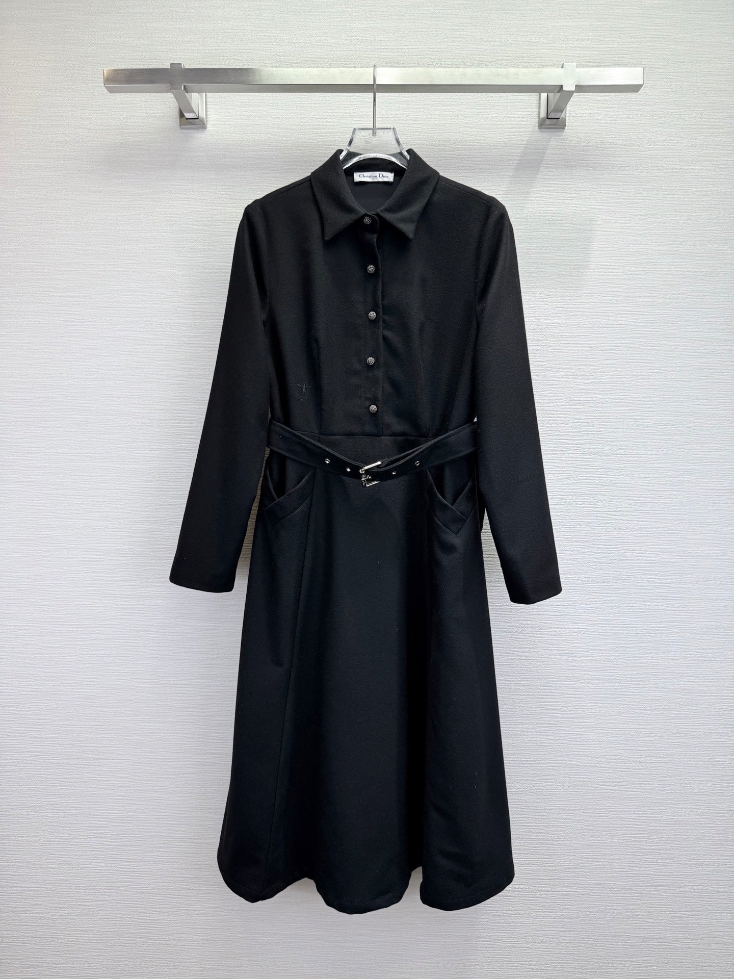 CD 25SS Long Dress With A Fabric Belt Black Wool 306575