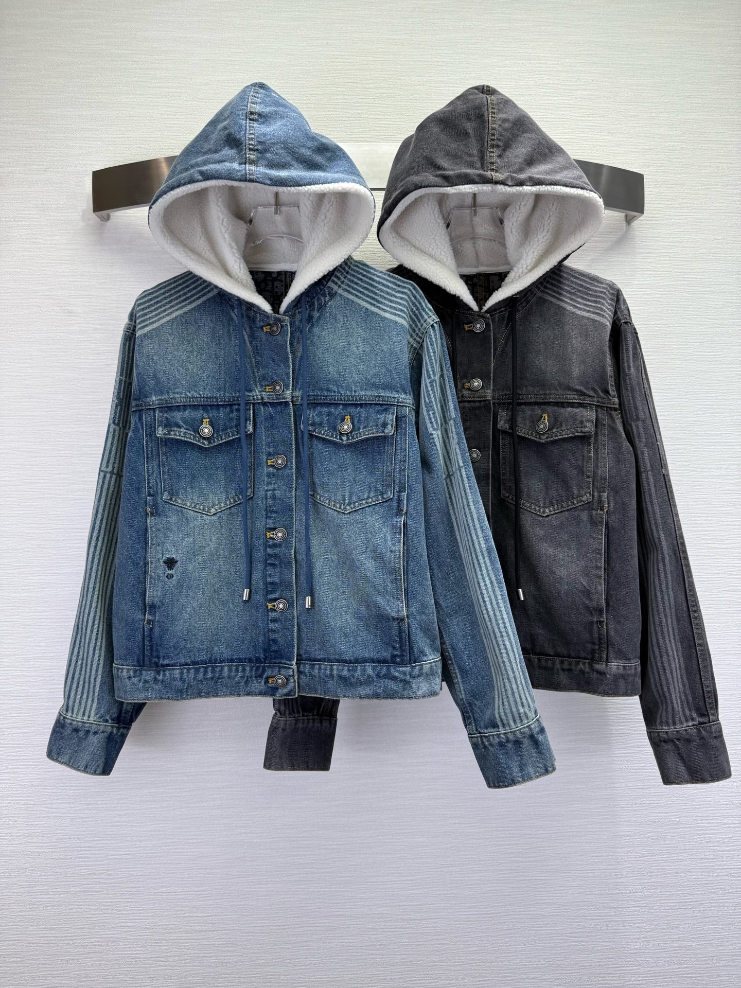 CD 25SS Polar Fleece Composite Denim Hooded Jacket Blue Cotton 306529