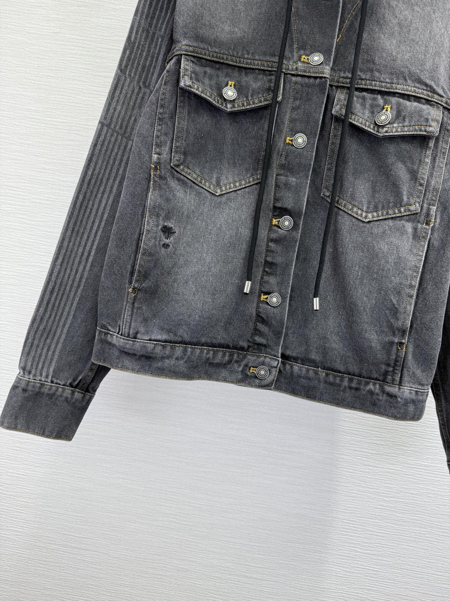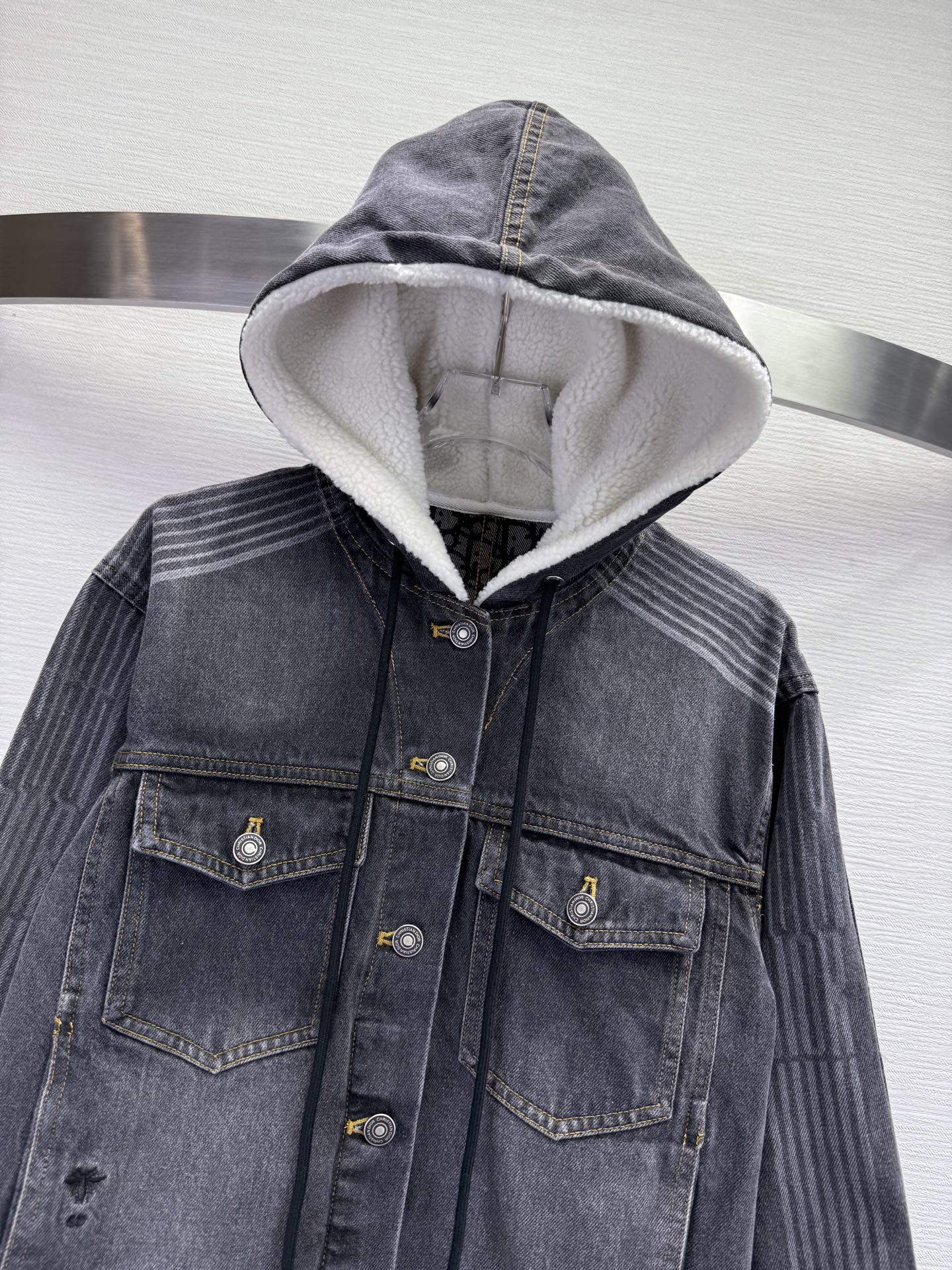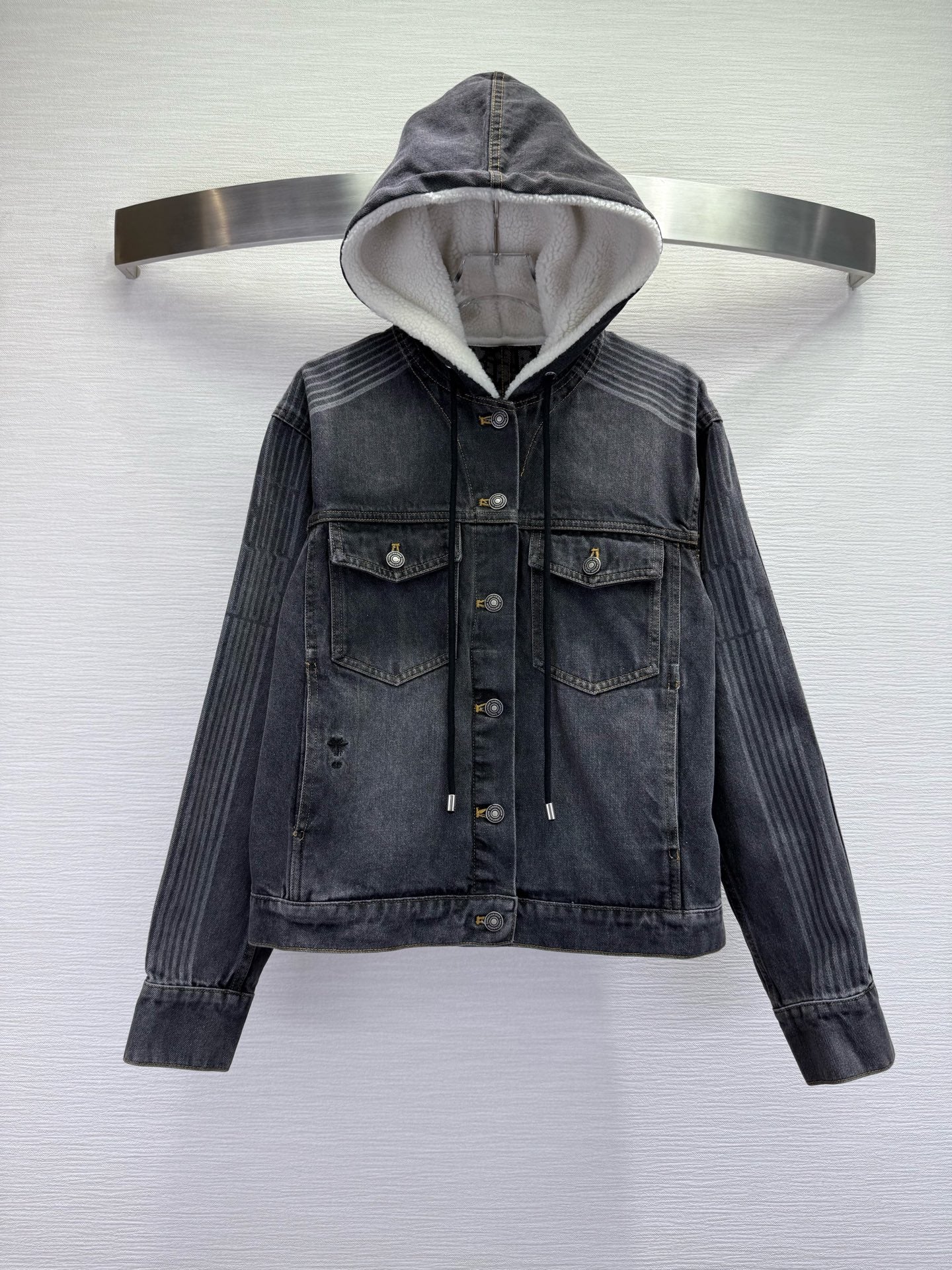 CD 25SS Polar Fleece Composite Denim Hooded Jacket Dark Gray Cotton 306527