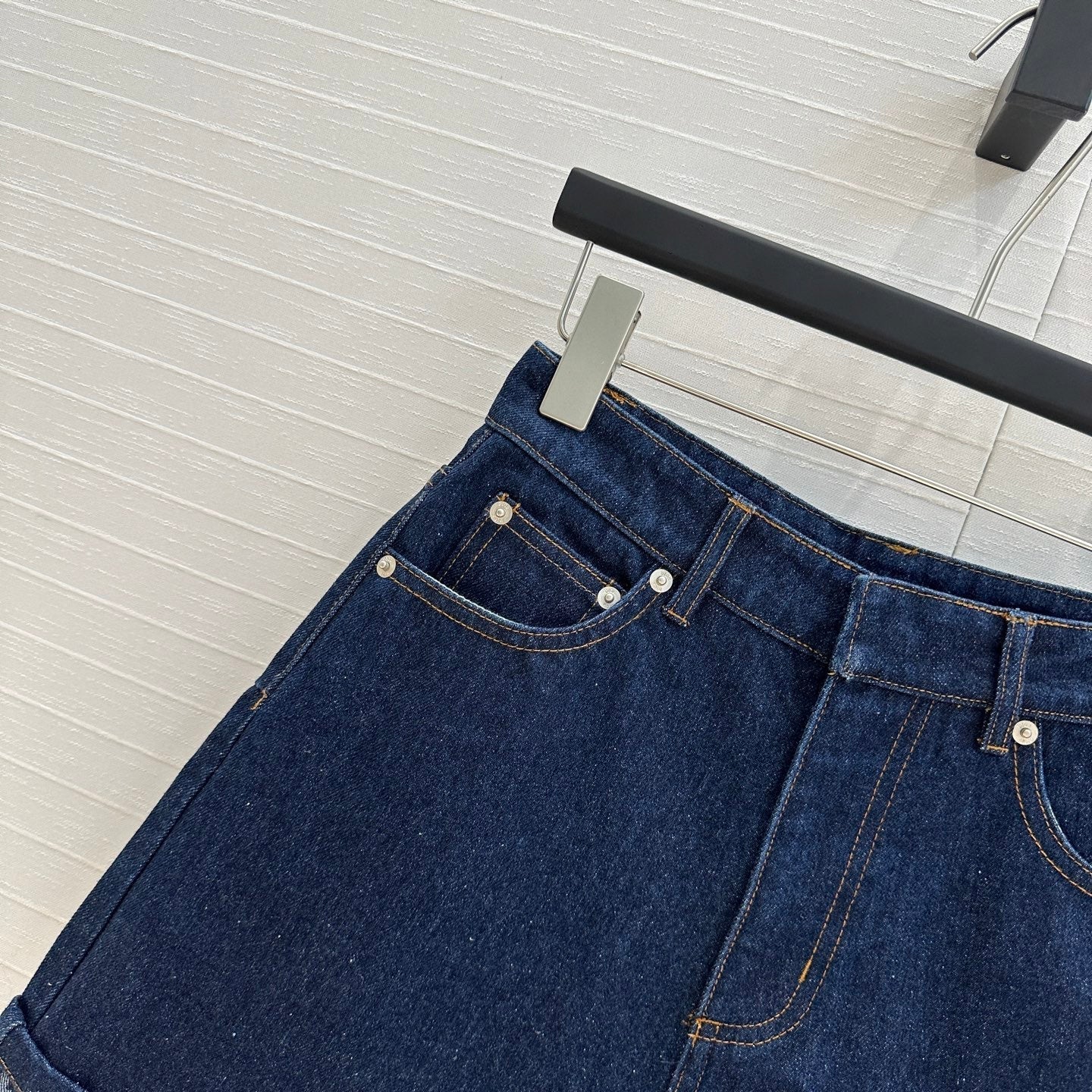 CD Denim Shorts With Old Flower Pattern Blue Cotton