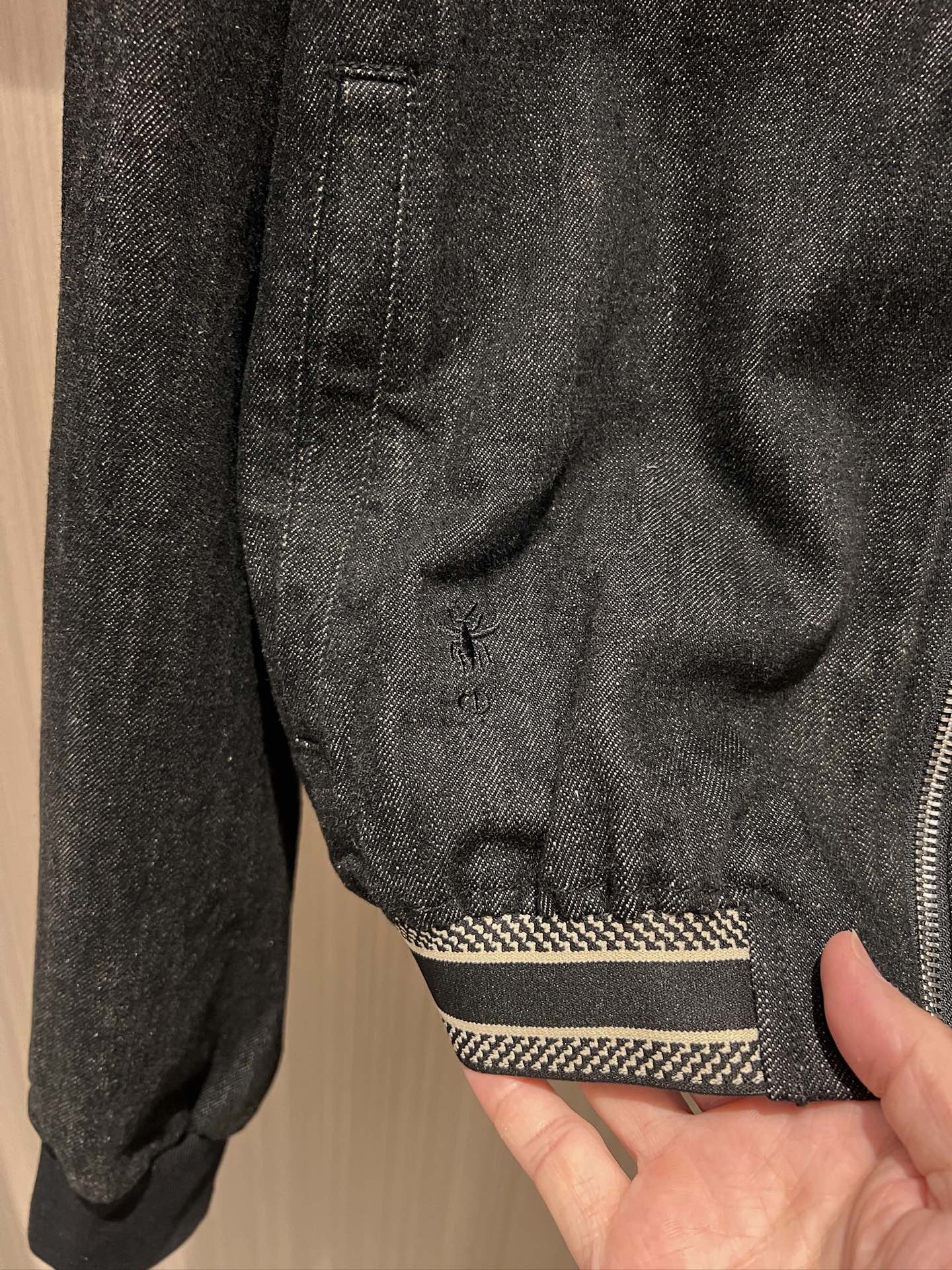 CD Hooded Waistband Denim Jacket Black mix Gray Cotton