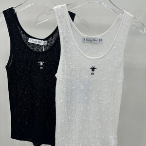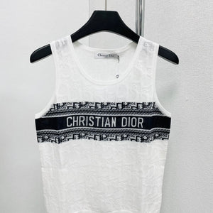 Dior 25 Black Red Neckline Viscose White Tank Top