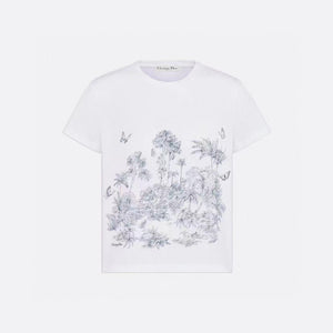 CD Butterfly T-shirt White mix Blue Cotton Linen