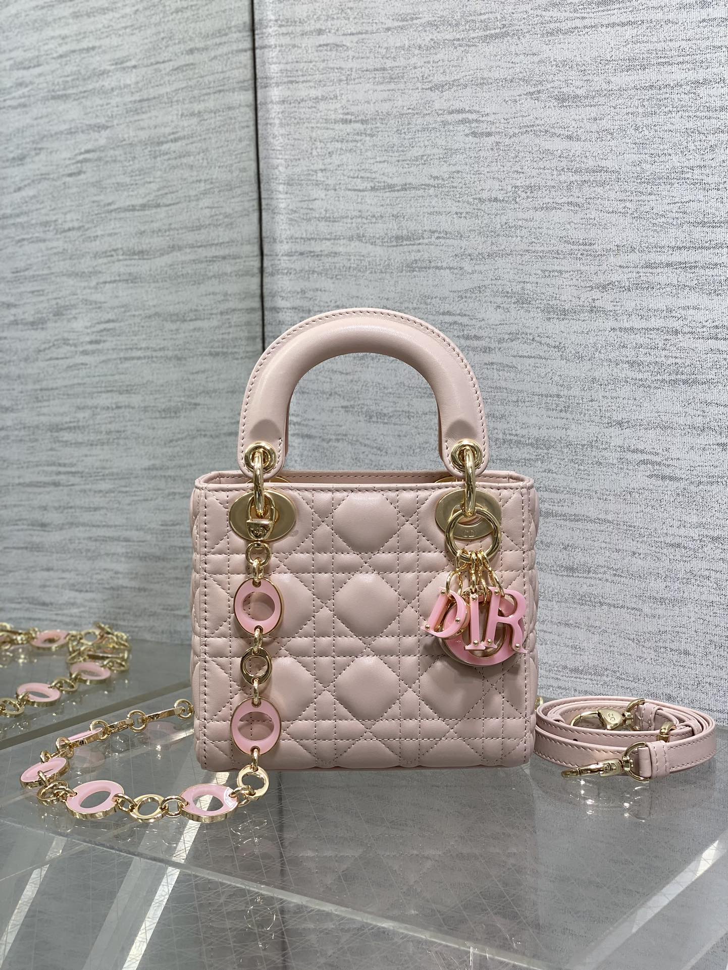 CD Lady 17cm Pink Lambskin Pink Charm