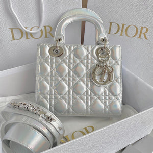 MEDIUM LADY D-JOY 26 WHITE LAMBSKIN