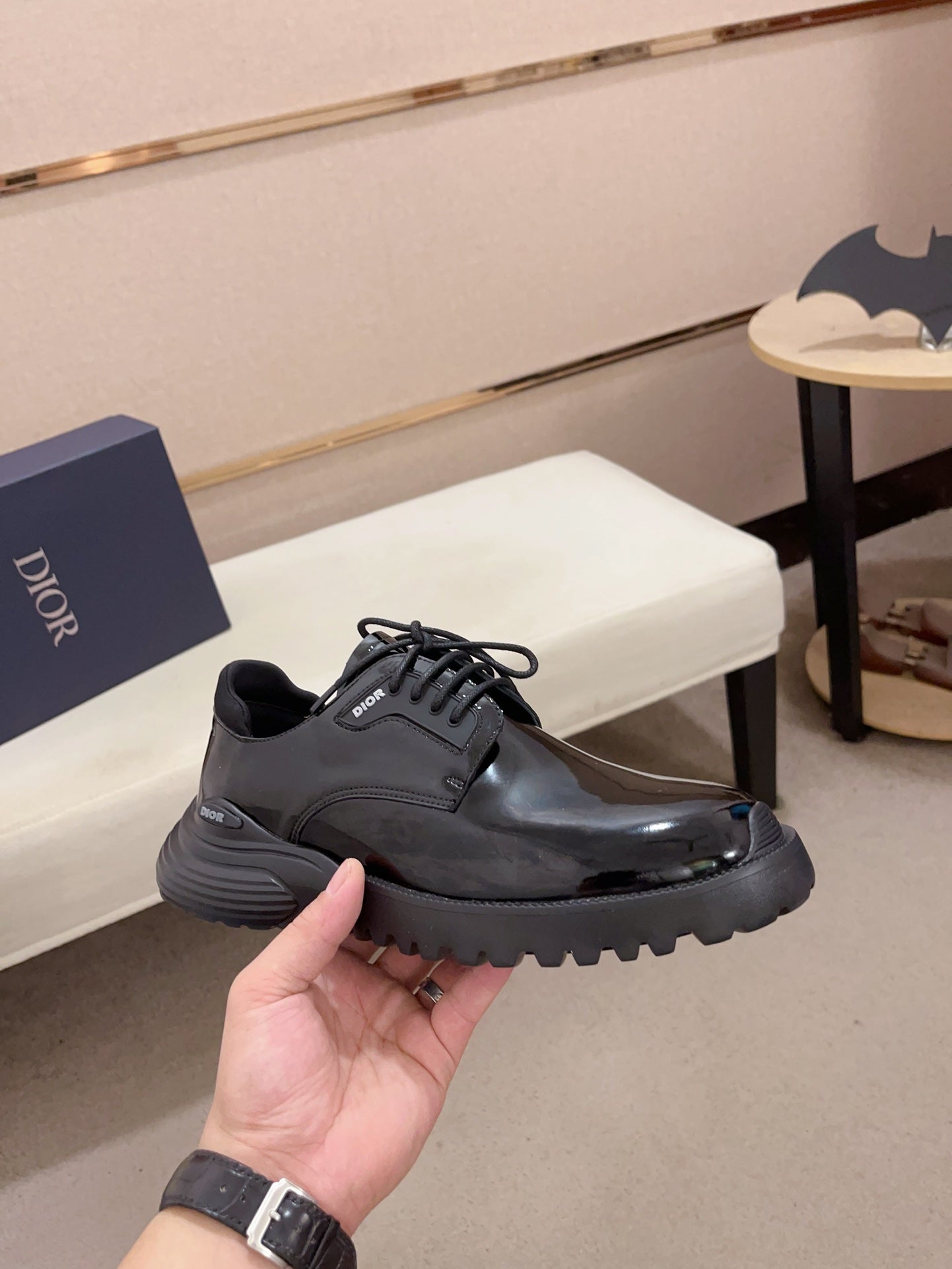 CD COMBAT BASIC SHOE BLACK POLISHED CALFSKIN
