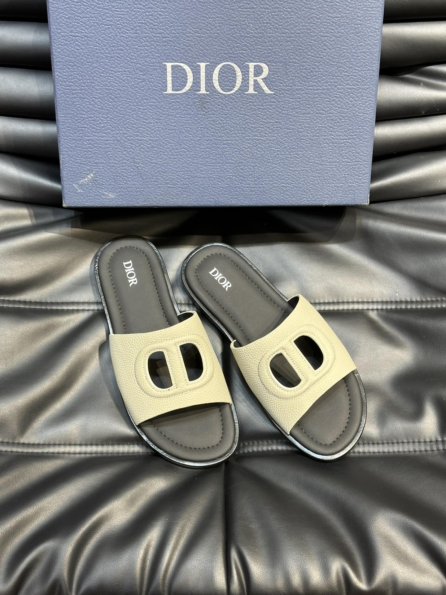 CD D-CLUB SLIDE SLIPPER LIGHT IVORY GRAINED CALFSKIN