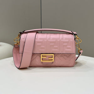 BAGUETTE WITH FF MOTIF 27 IN CERISH PINK SOFT LAMBSKIN GOLD HARDWARE