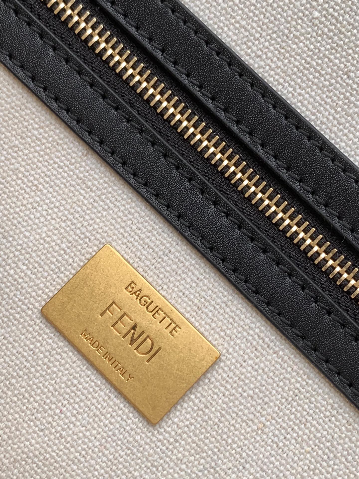 Fend Baguette Black White Brown Orange Canvas Bag 27 with FF Embroidery Ghw