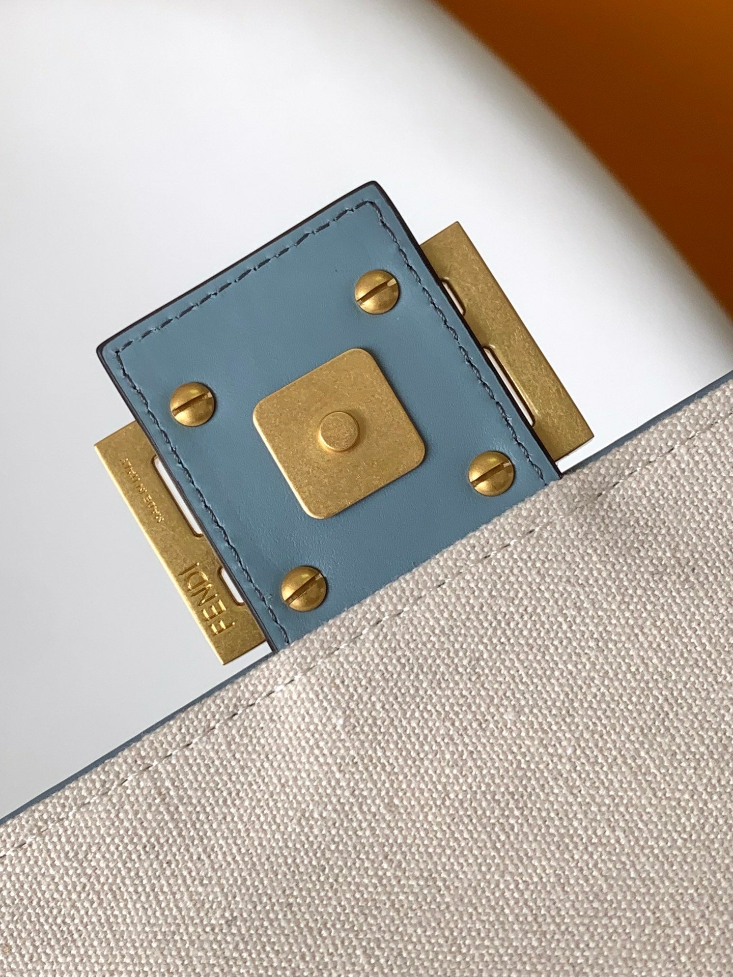 Fend Baguette Sky Blue and Multicolour Canvas Bag 27 with FF Embroidery Ghw
