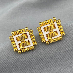 FF BAGUETTE MOTIF SHAPED GOLD EARRINGS