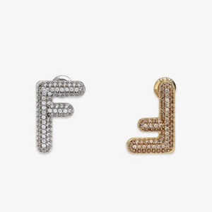 F GOLD FULL DIAMOND LETTER EARRINGS